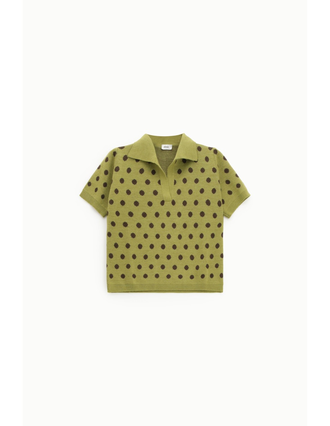 Camisola Curta Às Bolinhas Com Mangas Curtas E Gola Dixie