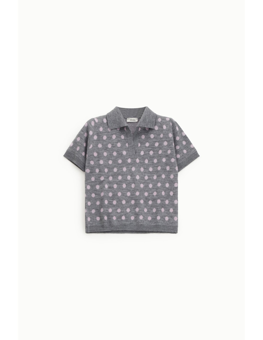 Camisola de manga curta com padrão de bolinhas e gola polo