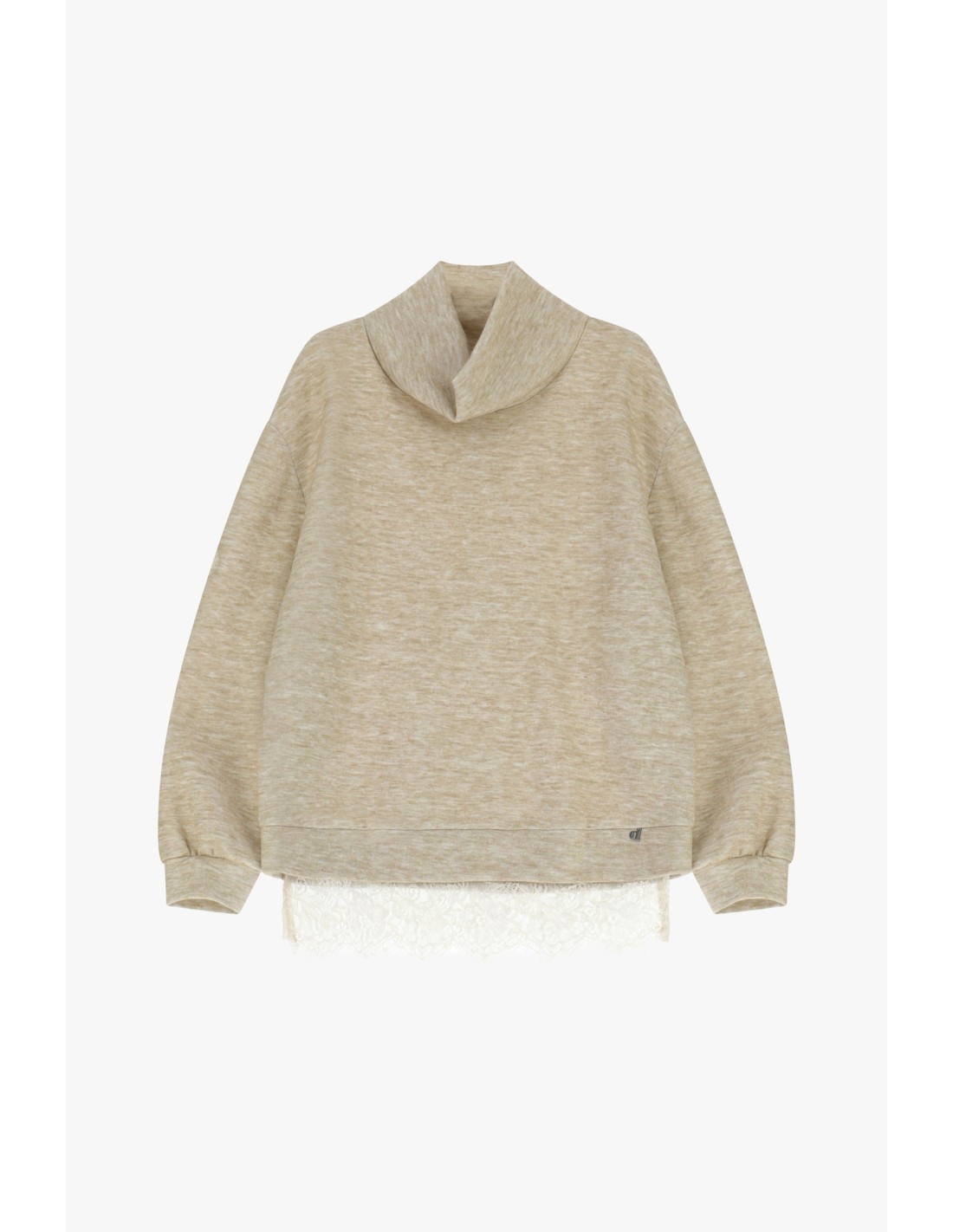 Camisola De Gola Alta Ampla Com Acabamento Em Renda Dixie