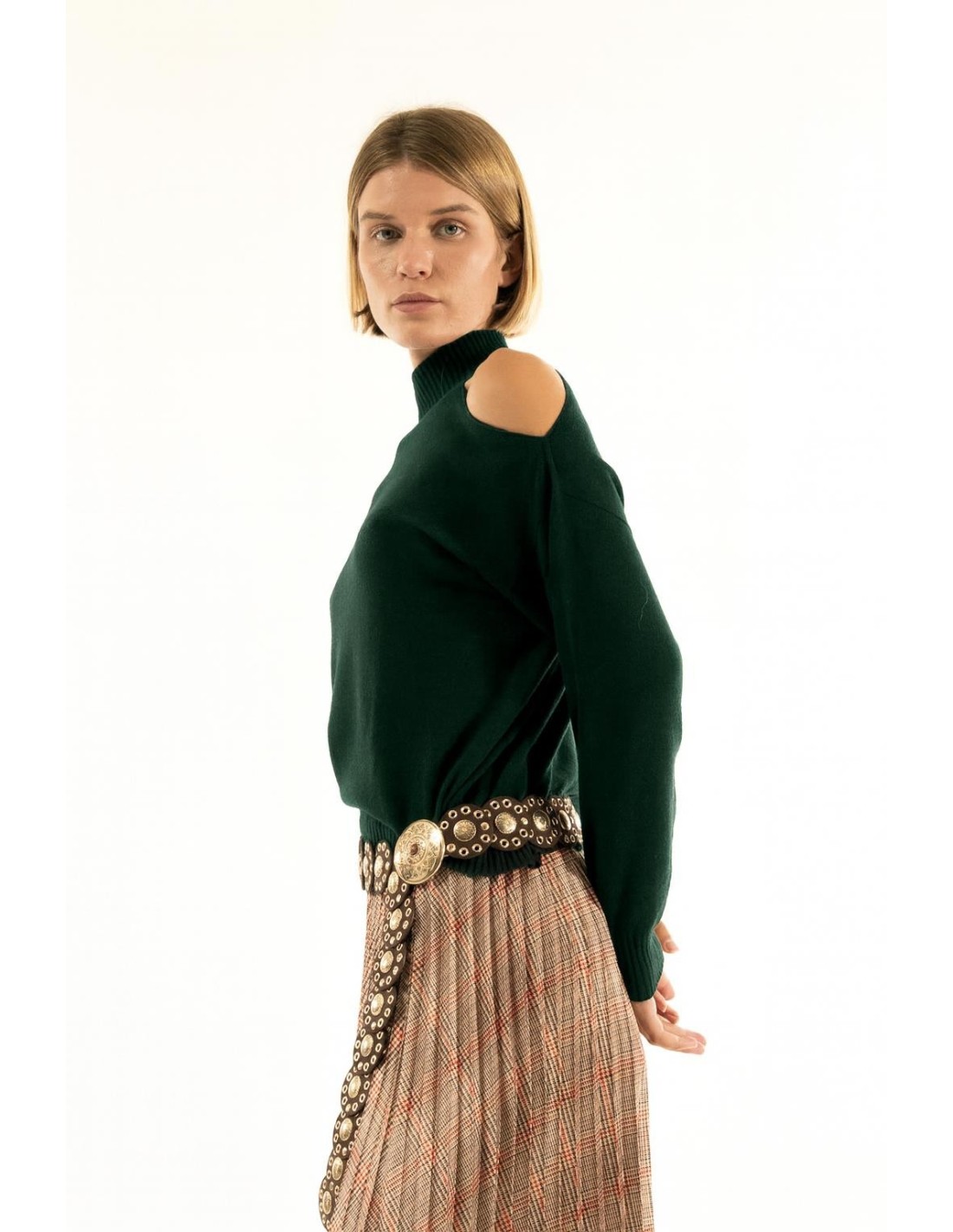 Camisola de gola alta com abertura no ombro Kontatto