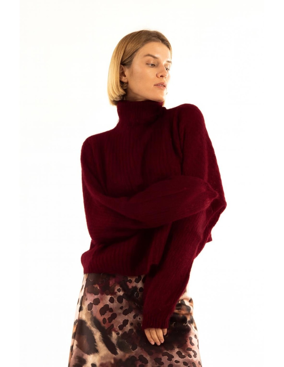 Camisola de gola alta em ponto pipoca Kontatto