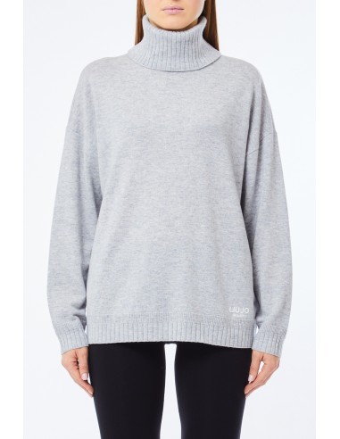 T-shirt com gola alta, cor sólida, mangas compridas, bainhas caneladas.