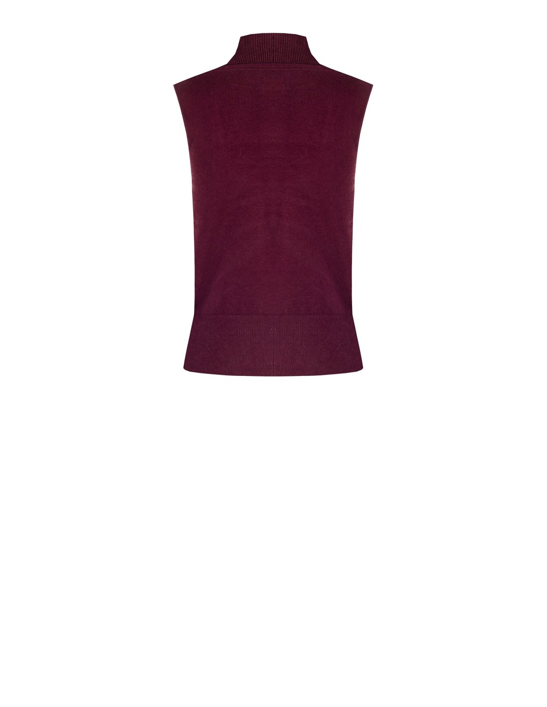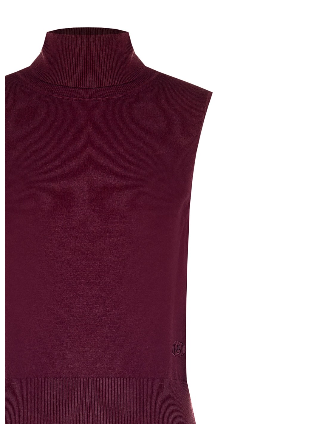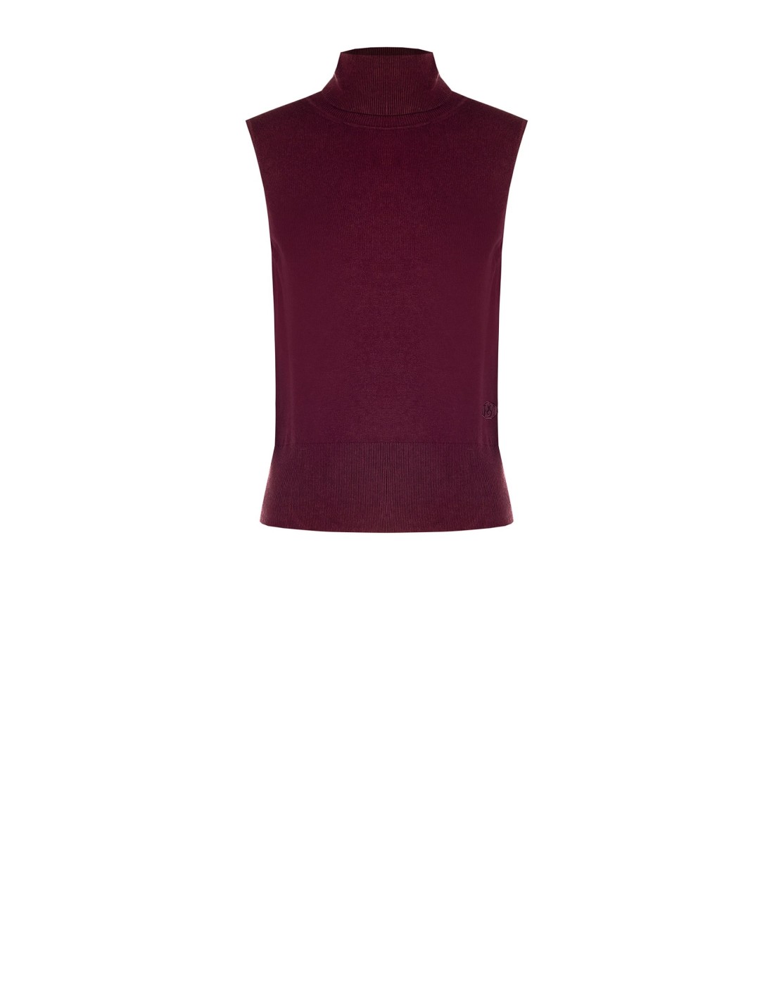 Sem mangas, justo mas confortável, que contorna a silhueta. Malha fina em viscose elástica, suave ao toque. Gola alta envolvente e acabamento maxi canelado que realça a cintura; micro logótipo bordado tom sobre tom. Versátil sob um blazer ou sozinho, ideal para o escritório e para o dia a dia chique.
