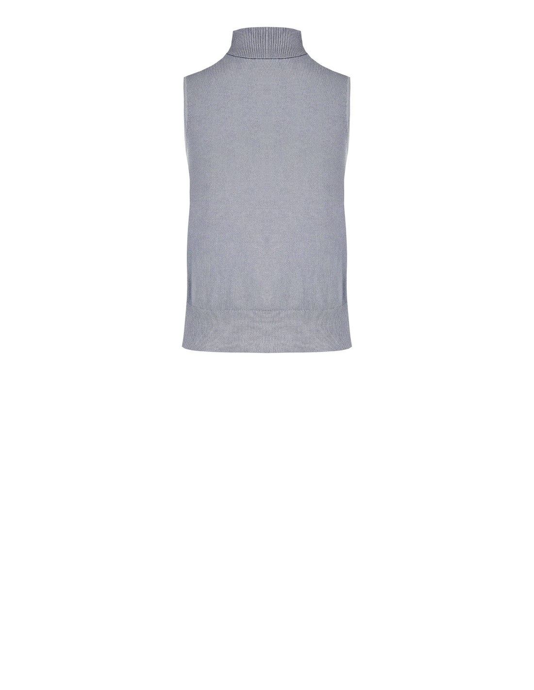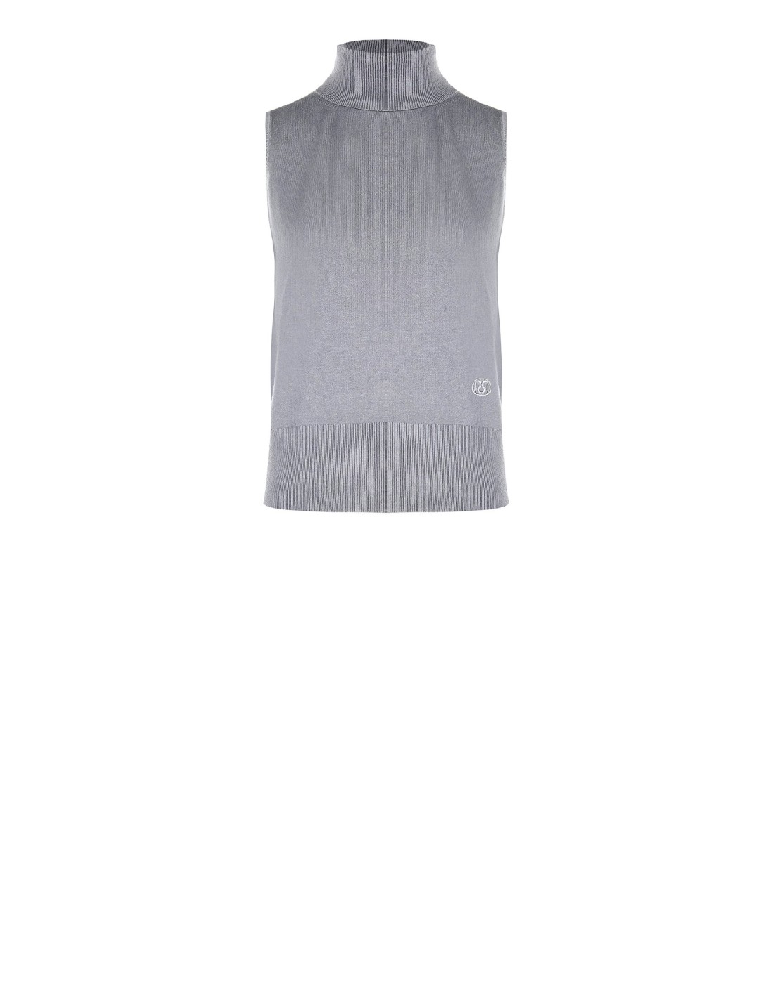 Sem mangas, justo mas confortável, que contorna a silhueta. Malha fina em viscose elástica, suave ao toque. Gola alta envolvente e acabamento maxi canelado que realça a cintura; micro logótipo bordado tom sobre tom. Versátil sob um blazer ou sozinho, ideal para o escritório e para o dia a dia chique.