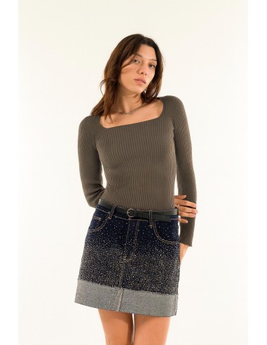 As linhas essenciais e a fibra elástica abraçam a silhueta com uma sensualidade discreta. O decote largo realça o decote, tornando cada look distinto e requintado. Uma peça versátil, pensada para quem gosta de se destacar com elegância.
