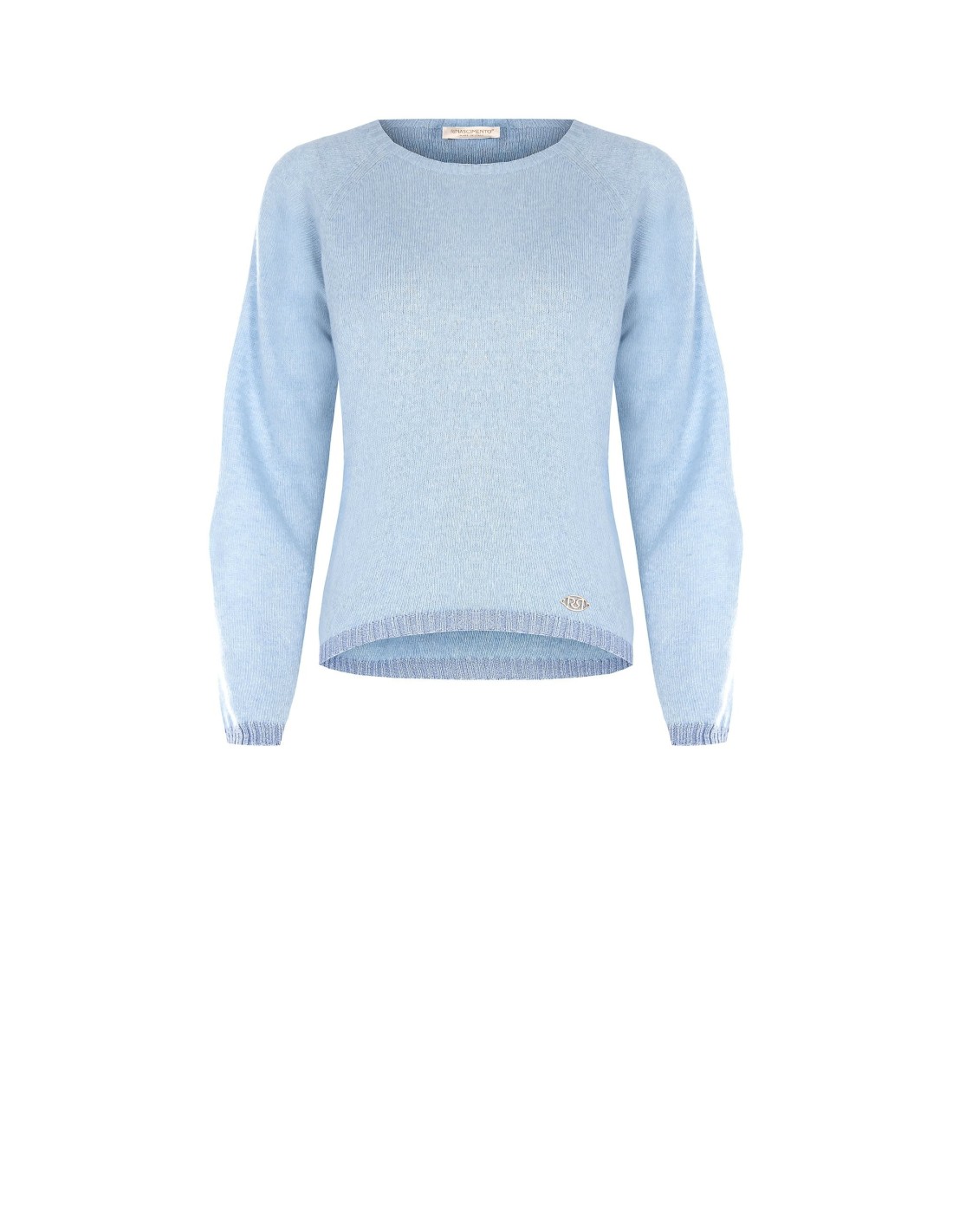 Pullover em malha de corte macio e feminino, ideal para acompanhar a silhueta com conforto. A textura suave e leve é valorizada pelo decote redondo, bainhas com fio luminoso e pequena plaqueta com logótipo. Perfeito para o escritório e para looks do dia-a-dia cuidados.