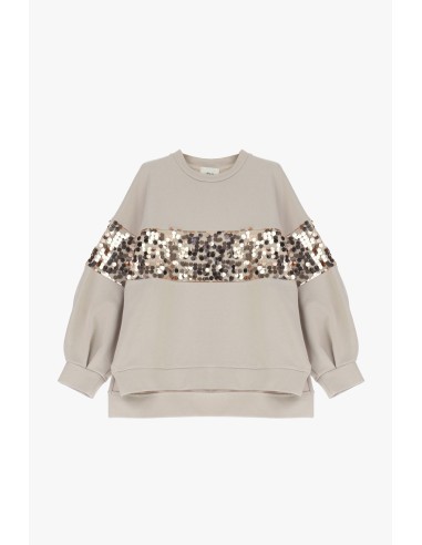 Uma camisola pensada para quem gosta de se destacar: o corte suave faz com que se sinta imediatamente à vontade, enquanto a faixa de maxi lantejoulas nas mangas dá um toque especial até aos dias mais simples. Perfeita para dinamizar os seus looks diários, com detalhes que não passam despercebidos.