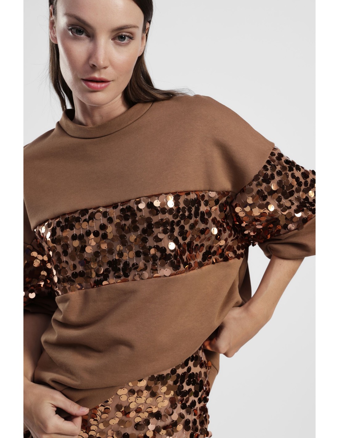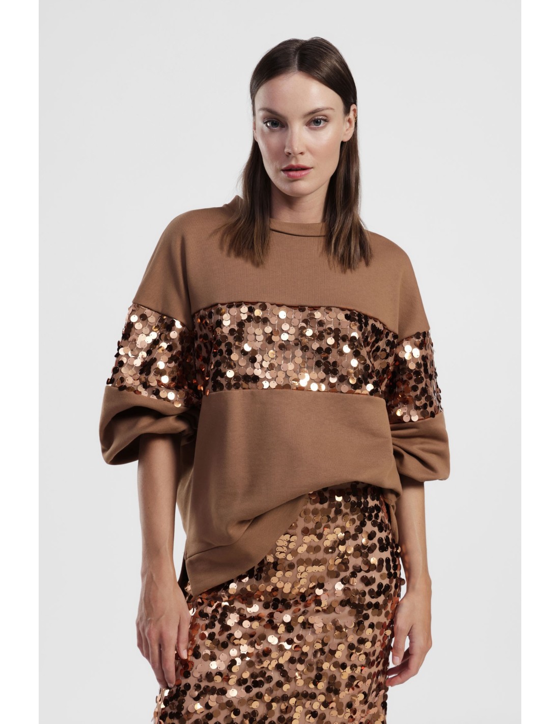 Camisola de gola redonda com maxi lantejoulas nas mangas
