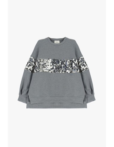 Uma camisola pensada para quem gosta de se destacar: o corte suave faz com que se sinta imediatamente à vontade, enquanto a faixa de maxi lantejoulas nas mangas dá um toque especial até aos dias mais simples. Perfeita para dinamizar os seus looks diários, com detalhes que não passam despercebidos.