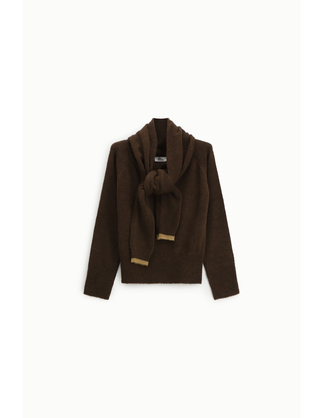 Camisola de gola redonda com cachecol integrado atado Dixie