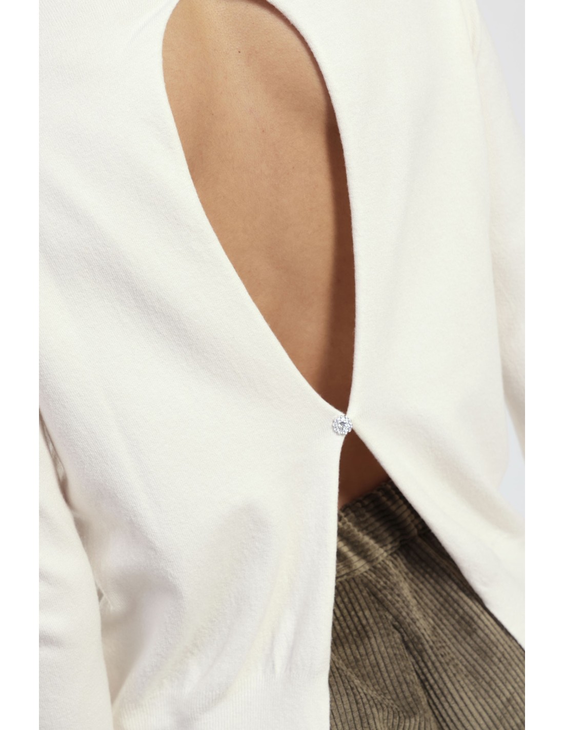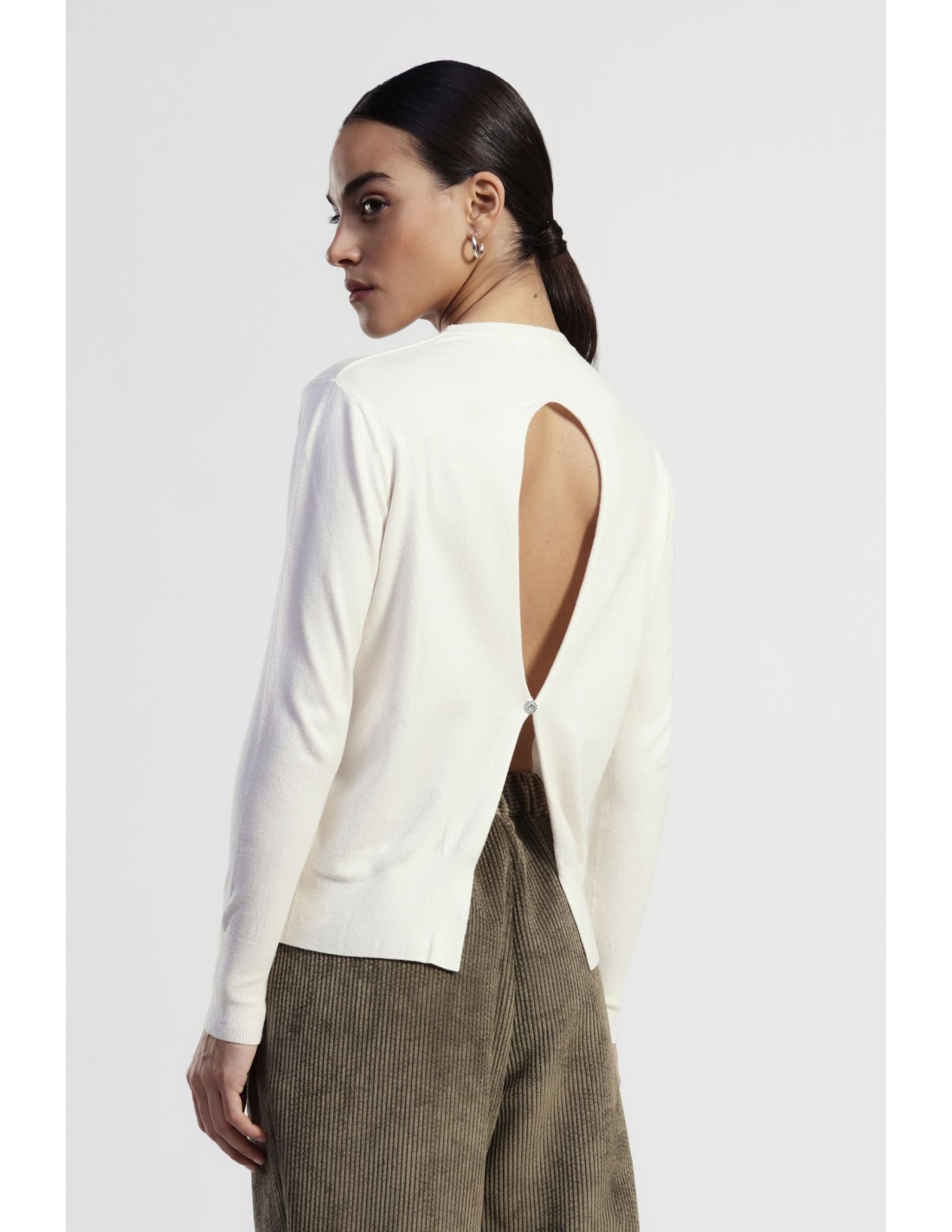 Essa camisola que adoras vestir todos os dias e que consegue surpreender com o corte simples na parte da frente, mas que revela um detalhe original com abertura nas costas. A gola redonda clássica e as mangas compridas tornam-na perfeita tanto para outfits descontraídos como para adicionar um toque distinto aos looks mais cuidados.