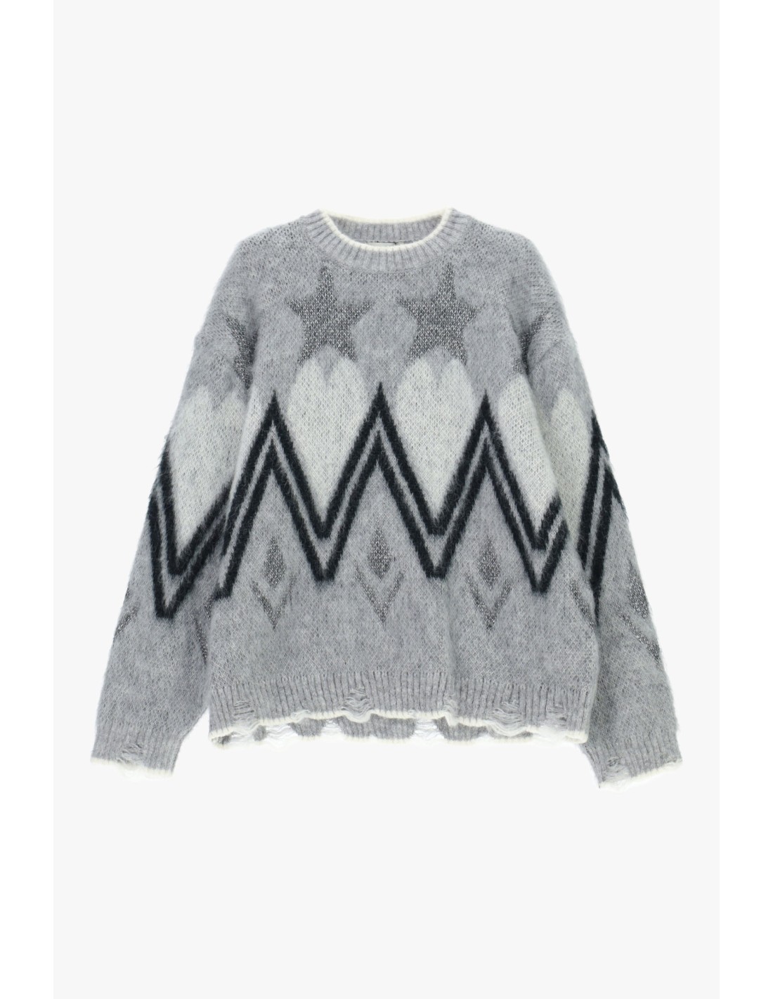Camisola de gola redonda com padrão de estrelas e zig-zag