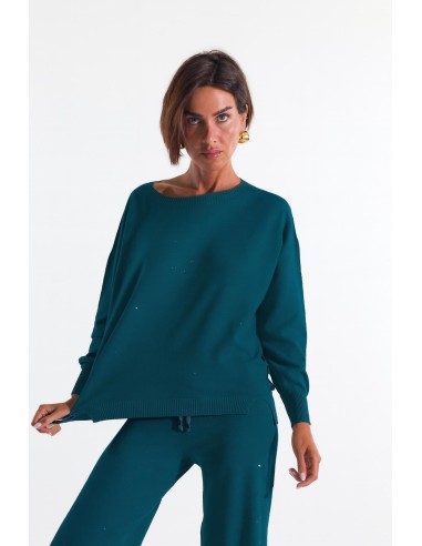 Kontatto assina um knit macio com fit relaxed que desliza no corpo sem marcar. Malha fina com micro-pailletes all-over e bordos canelados para definir a silhueta; decote redondo e ombro caído acrescentam conforto. Perfeita do escritório ao aperitivo: combina com denim ou calças fluidas para uma elegância luminosa do dia a dia.