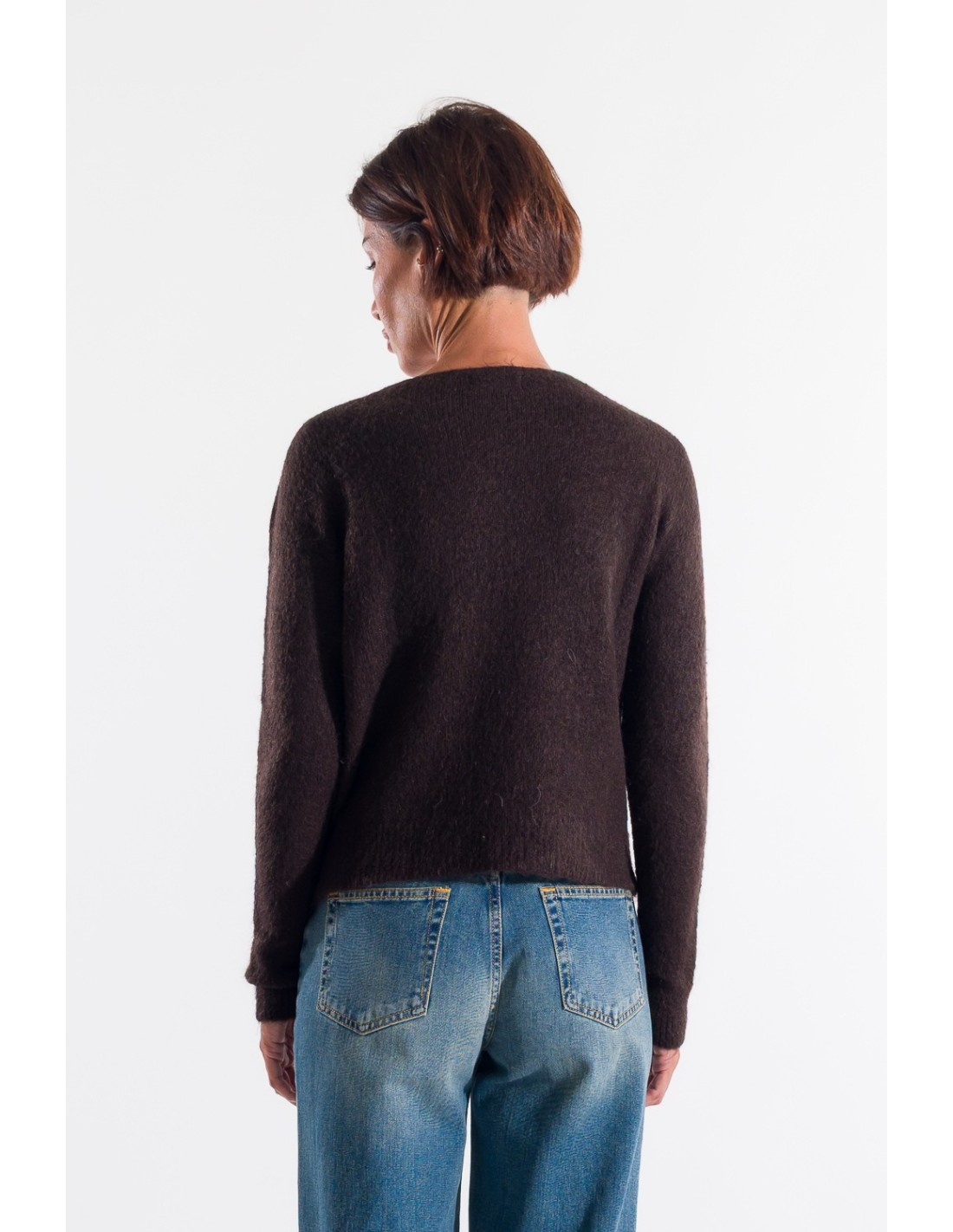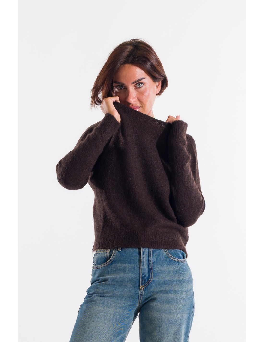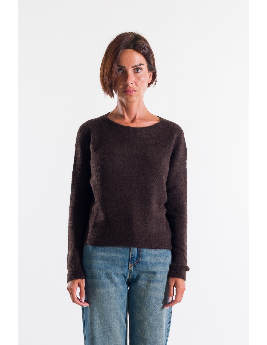Kontatto propõe um pulôver com um corte regular, macio na silhueta. Malha macia ao toque, felpuda, com fio quente e leve, ideal para o conforto diário. Gola redonda simples, punhos e bainha acabados em ribana para uma fixação impecável. Perfeito para o escritório ou para um fim de semana casual.