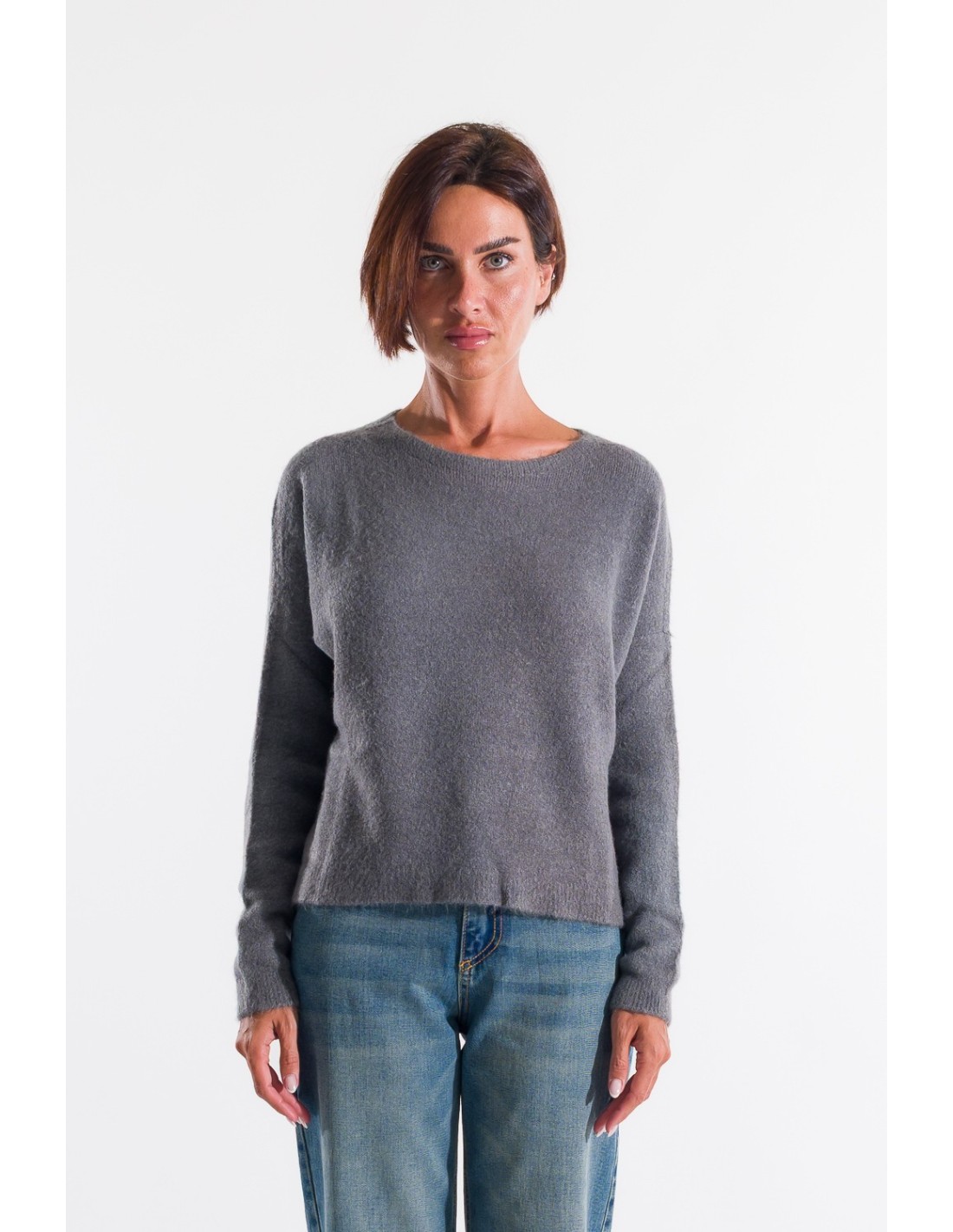 Pulôver Kontatto com um corte descontraído que desenha uma silhueta suave. Malha macia em fio leve com efeito peluche, agradável na pele. Gola redonda limpa e bainha viva ligeiramente irregular para um toque moderno. Perfeito para todos os dias, do escritório ao tempo livre, com jeans ou saias de alfaiataria.