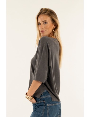 Pullover Kontatto com um corte suave e ligeiramente curto, concebido para realçar a silhueta com conforto. Malha fina e suave ao tato, textura compacta. Decote em V que favorece o decote, mangas à meia-haste e fendas laterais para maior liberdade de movimentos. Versátil: perfeito para o escritório e para o dia a dia.