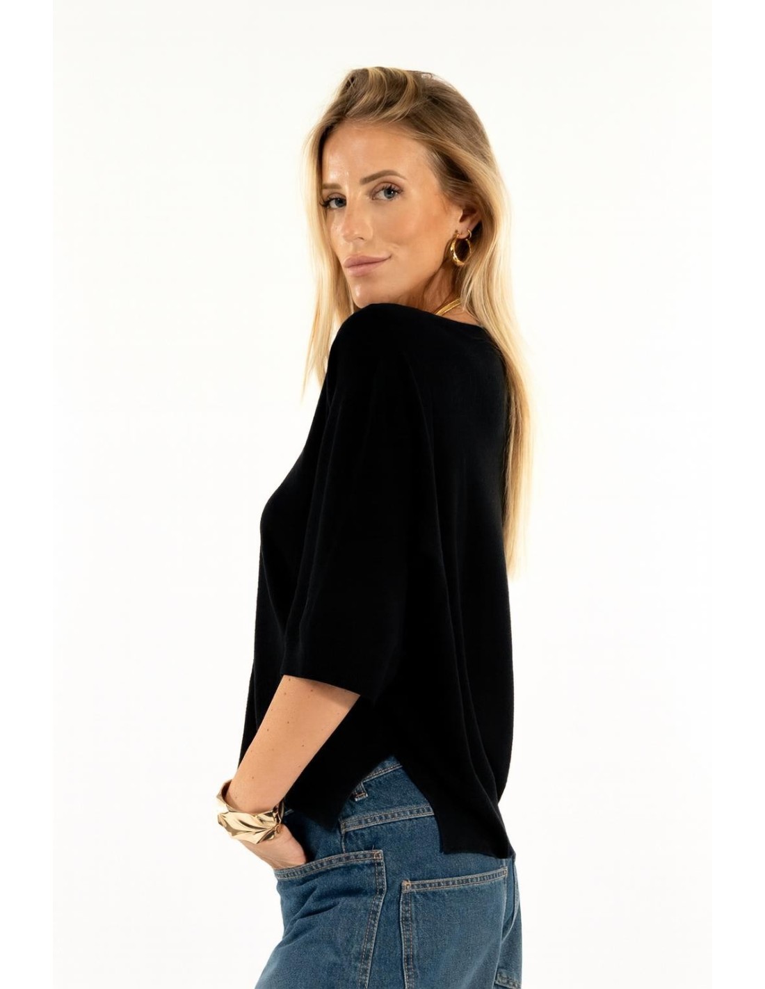 Pullover Kontatto com um corte suave e ligeiramente curto, concebido para realçar a silhueta com conforto. Malha fina e suave ao tato, textura compacta. Decote em V que favorece o decote, mangas à meia-haste e fendas laterais para maior liberdade de movimentos. Versátil: perfeito para o escritório e para o dia a dia.