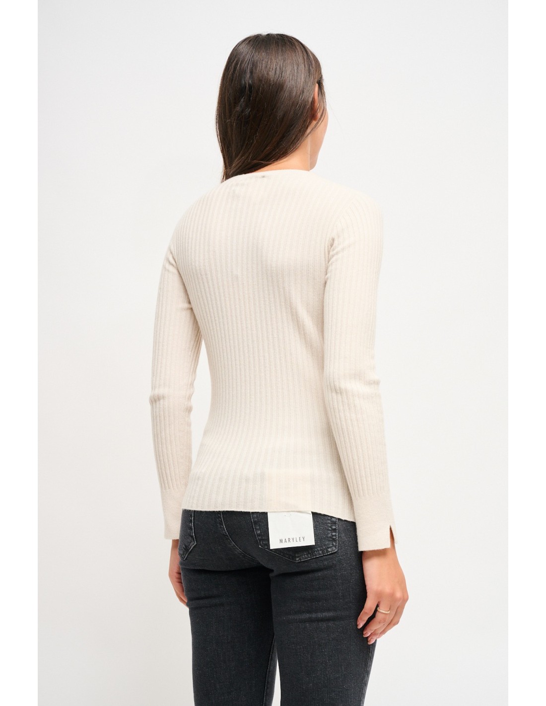 Maryley assina um top de mangas compridas com um corte justo que esculpe a silhueta com conforto. Malha canelada em fio macio e elástico, agradável na pele. Gola redonda limpa e pequenas aberturas nos punhos, detalhes que alongam e facilitam os movimentos. Perfeito para o escritório e para o dia a dia, sozinho ou por baixo de um blazer.