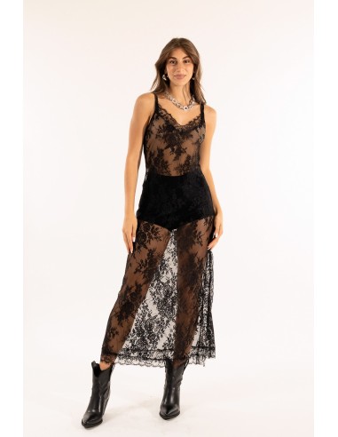 Kontatto apresenta um vestido lingerie com um corte justo e fluido que esculpe a silhueta. Tule e renda bordada criam transparências leves. Decote em V com borda ondulada e fenda lateral para uma passada livre. Perfeito sobre body ou denim para a noite, festas e cocktails, com conforto e feminilidade assegurados.