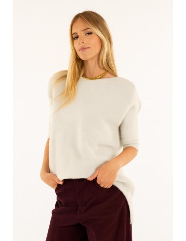 Kontatto assina uma camisola macia de corte descontraído que acaricia a silhueta sem marcar. Fio macio e vaporoso, toque quente. Decote barco que realça o pescoço, mangas até ao cotovelo e fendas laterais para liberdade de movimento. Perfeita para o escritório com calças de alfaiataria ou para um estilo casual chique do dia a dia.