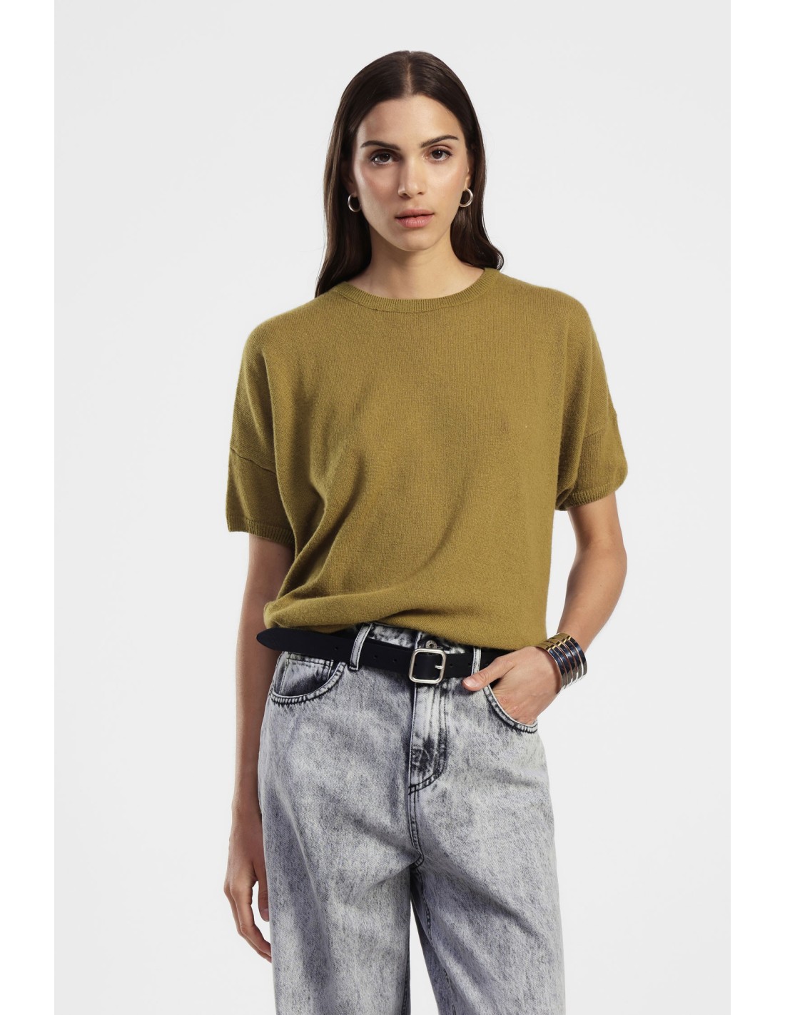 Desenhada para quem gosta de se destacar com simplicidade, esta camisola de manga curta apresenta uma silhueta suave e versátil. Ideal tanto para dias casuais como para combinações originais, o corte solto e a gola redonda garantem conforto e liberdade de movimentos. Use-o para realçar a sua feminilidade com um toque autêntico.