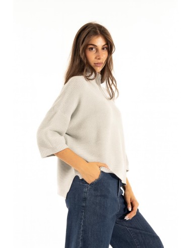 Camisola Kontatto com corte solto e ligeiramente oversized: envolve sem marcar, valorizando a silhueta. Malha canelada compacta, agradável na pele. Gola alta macia e mangas largas ao nível do cotovelo, barra com pequenas fendas para liberdade de movimento. Perfeita para o escritório ou para um look daily chic com denim e alfaiataria.