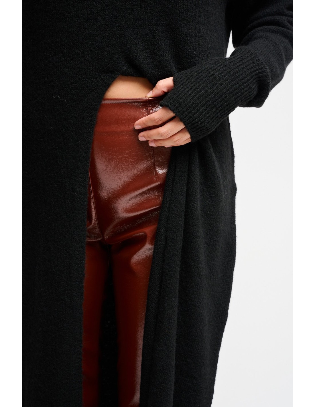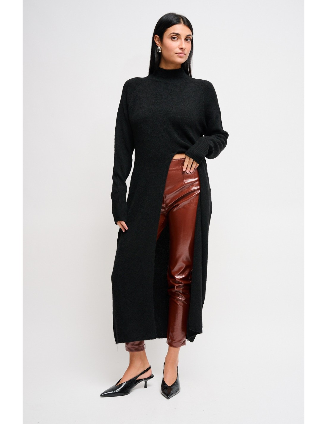 Maryley assina um pulôver longo de corte suave que valoriza a silhueta sem a apertar. Malha macia e envolvente, textura quente. Gola alta e maxi abertura frontal para liberdade de movimento e sobreposições com jeans ou calças slim. Perfeito do escritório ao aperitivo, com um toque marcante.