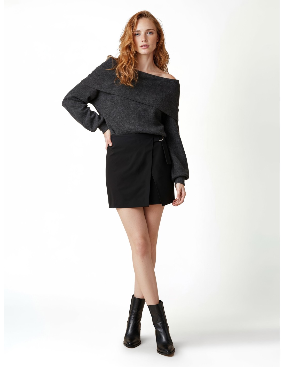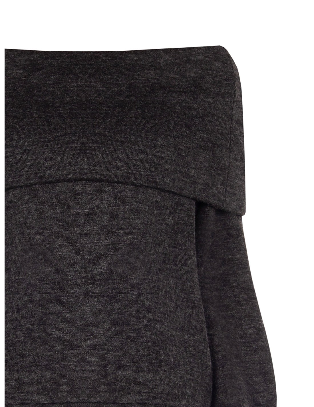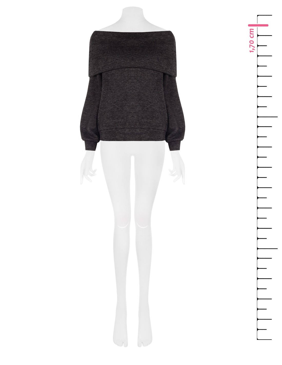 Camisola macia de corte relaxado que delineia uma silhueta feminina sem constrangimentos. Fio misto com toque macio e ligeira pelugem. Decote barco amplo com maxi dobra e mangas balloon com punho. Perfeita do escritório ao aperitivo, fácil de conjugar e confortável o dia todo.