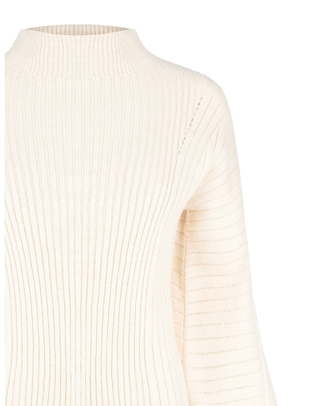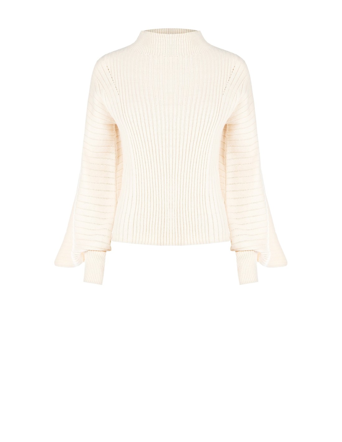 Pullover em fio macio canelado, com um corte que acaricia a silhueta e proporciona conforto ao longo de todo o dia. A gola alta e as mangas amplas com punhos compridos criam uma elegância moderna e feminina. Perfeito para o escritório ou para looks do dia a dia cuidados e versáteis.
