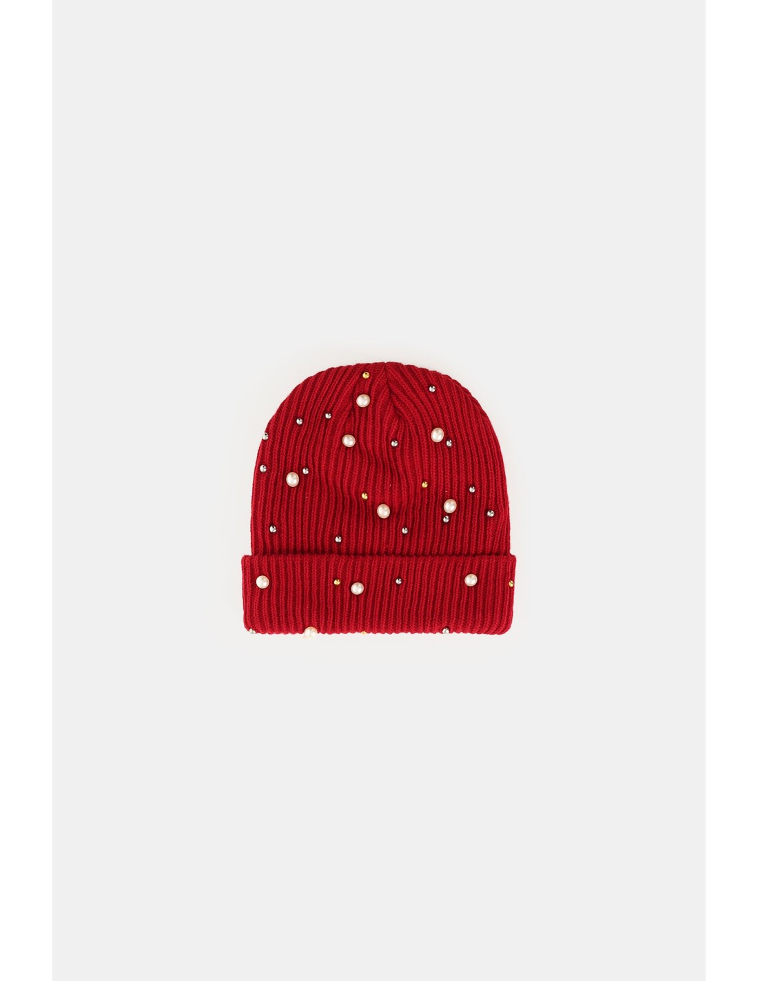 Gorro canelado com pérolas decorativas