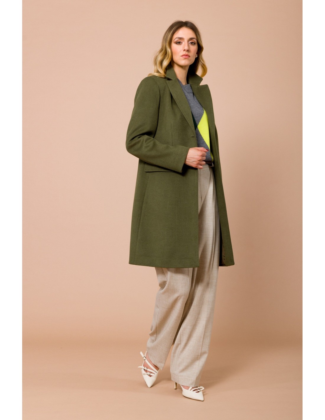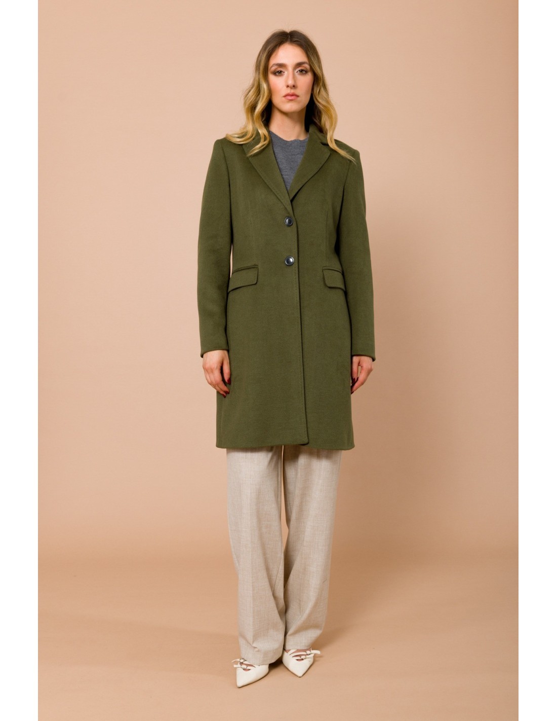 Maryley apresenta um casaco de corte reto e feminino, em tecido misto de lã macio com toque compacto e forrado no interior para conforto térmico. Revers esculpido, fecho de botões e bolsos com aba definem a linha. Versátil, do look de trabalho ao aperitivo, valoriza a silhueta com elegância sem esforço.