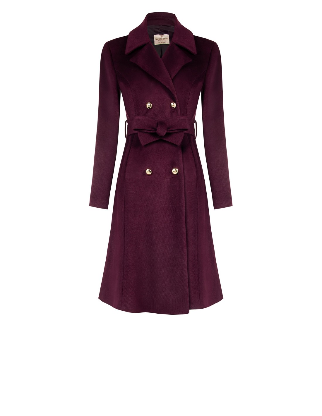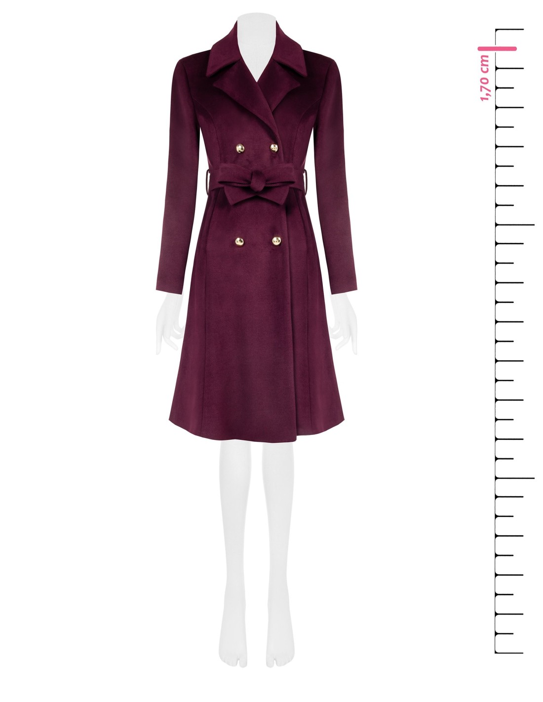 Sobretudo comprido em velour macio, de corte evasé que realça a cintura graças ao cinto coordenado. O duplo peito com botões com logótipo ilumina a silhueta. Perfeito do escritório ao aperitivo, acrescenta logo carácter a qualquer look.