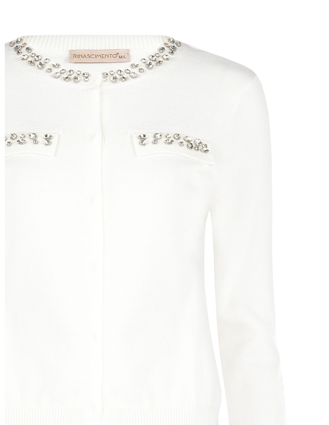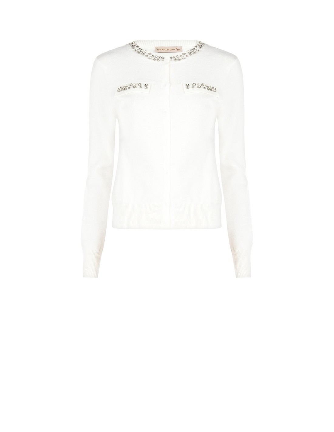 Cardigã Em Malha Com Cristais Cabochon Rinascimento