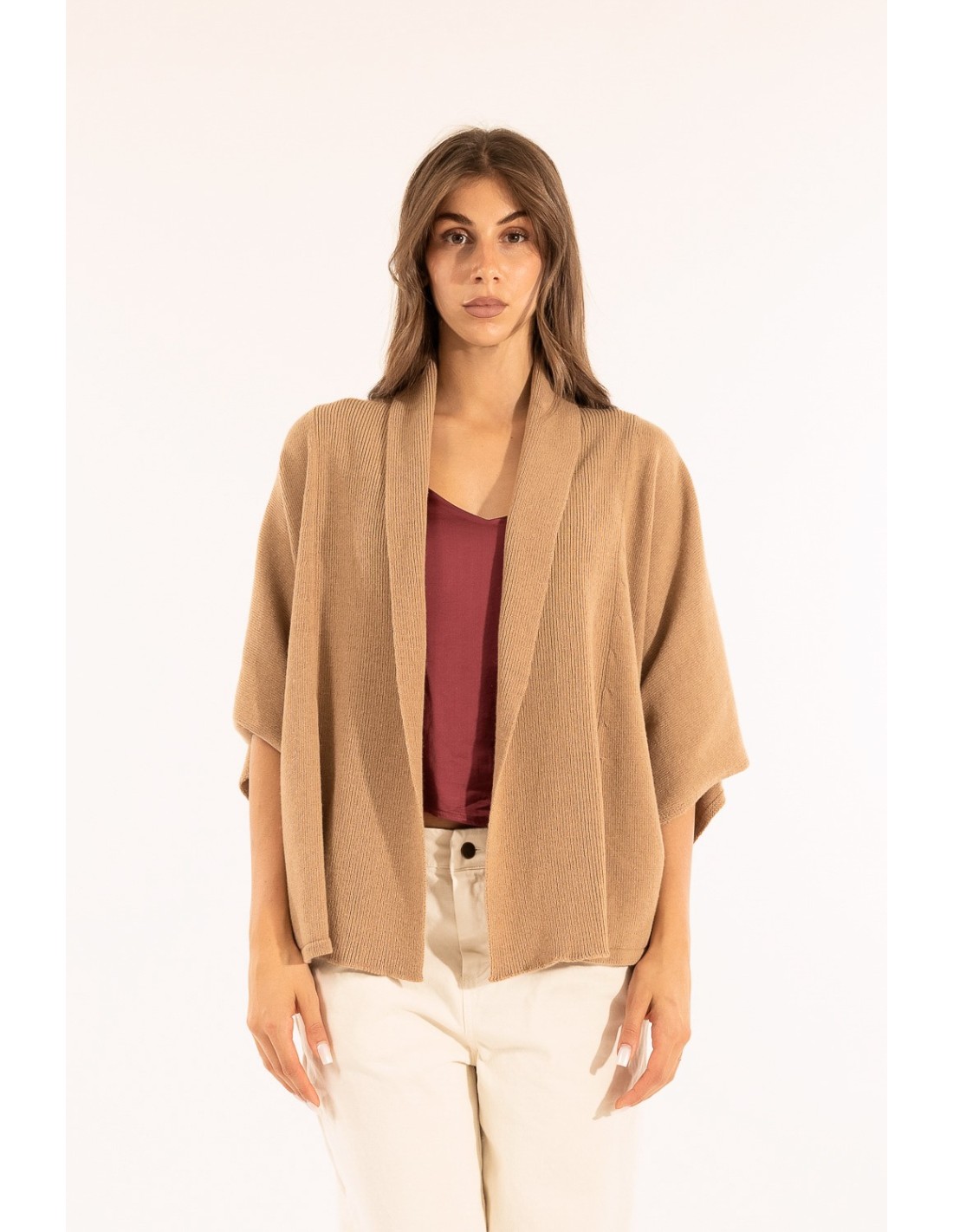 Malha aberta Kontatto de corte relaxado, macia e envolvente em malha fina com toque suave. Gola canoa canelada e mangas amplas estilo kimono valorizam a silhueta sem a apertar. Perfeita por cima de tops e camisas para o escritório, lazer ou como camada leve de viagem.