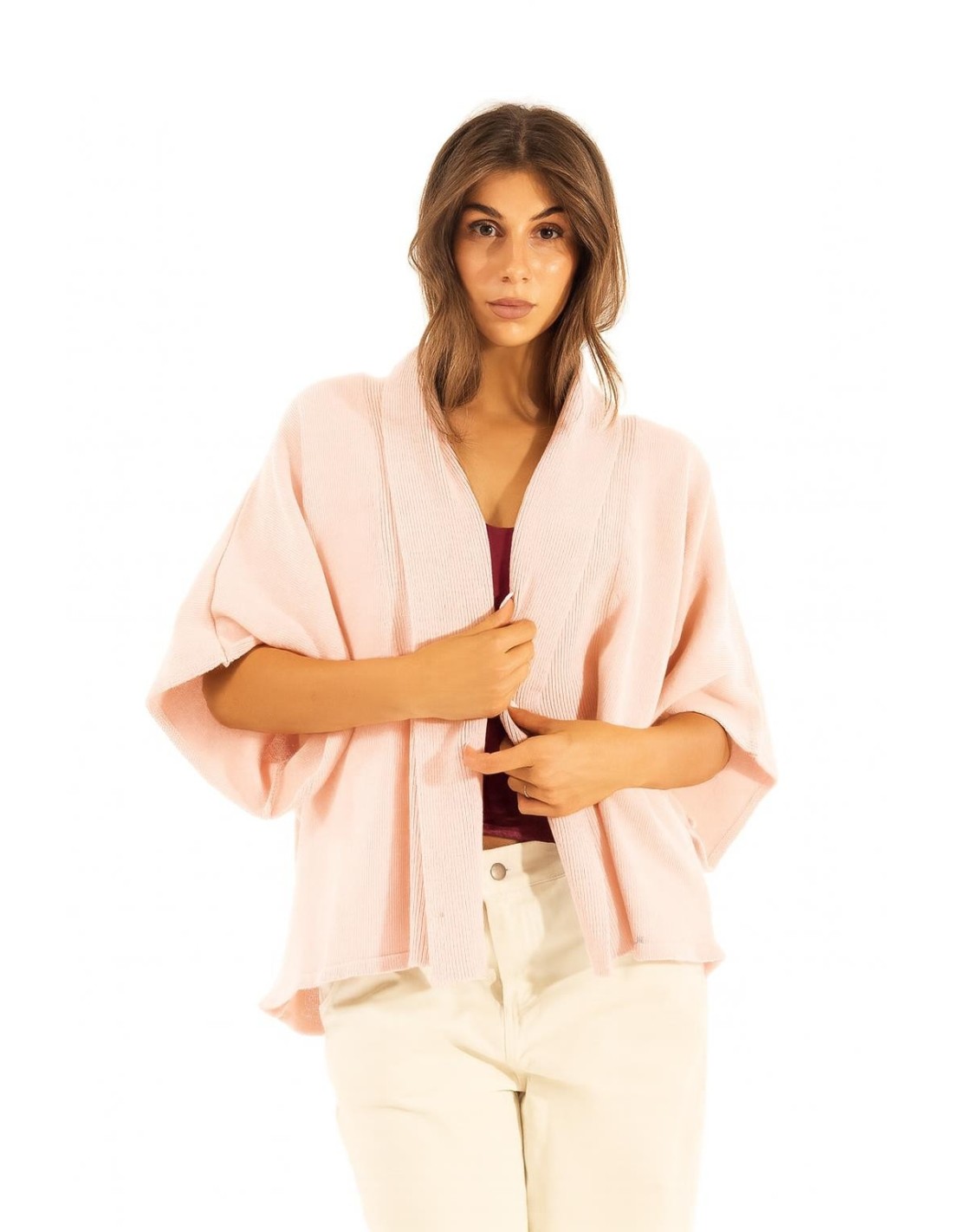 Malha aberta Kontatto de corte relaxado, macia e envolvente em malha fina com toque suave. Gola canoa canelada e mangas amplas estilo kimono valorizam a silhueta sem a apertar. Perfeita por cima de tops e camisas para o escritório, lazer ou como camada leve de viagem.