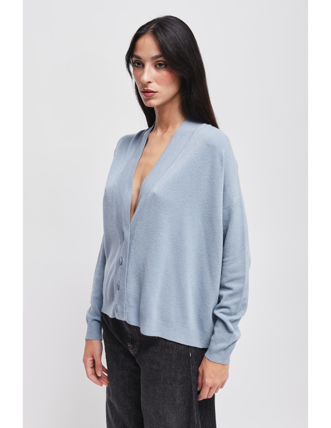 Maryley interpreta a malha com um modelo suave e descontraído que cai direito sobre a silhueta. Malha fina e macia ao toque para conforto diário. Decote em V profundo e maxi botões tom sobre tom realçam a cintura. Perfeito com denim e fato: do escritório ao aperitivo, com elegância natural.