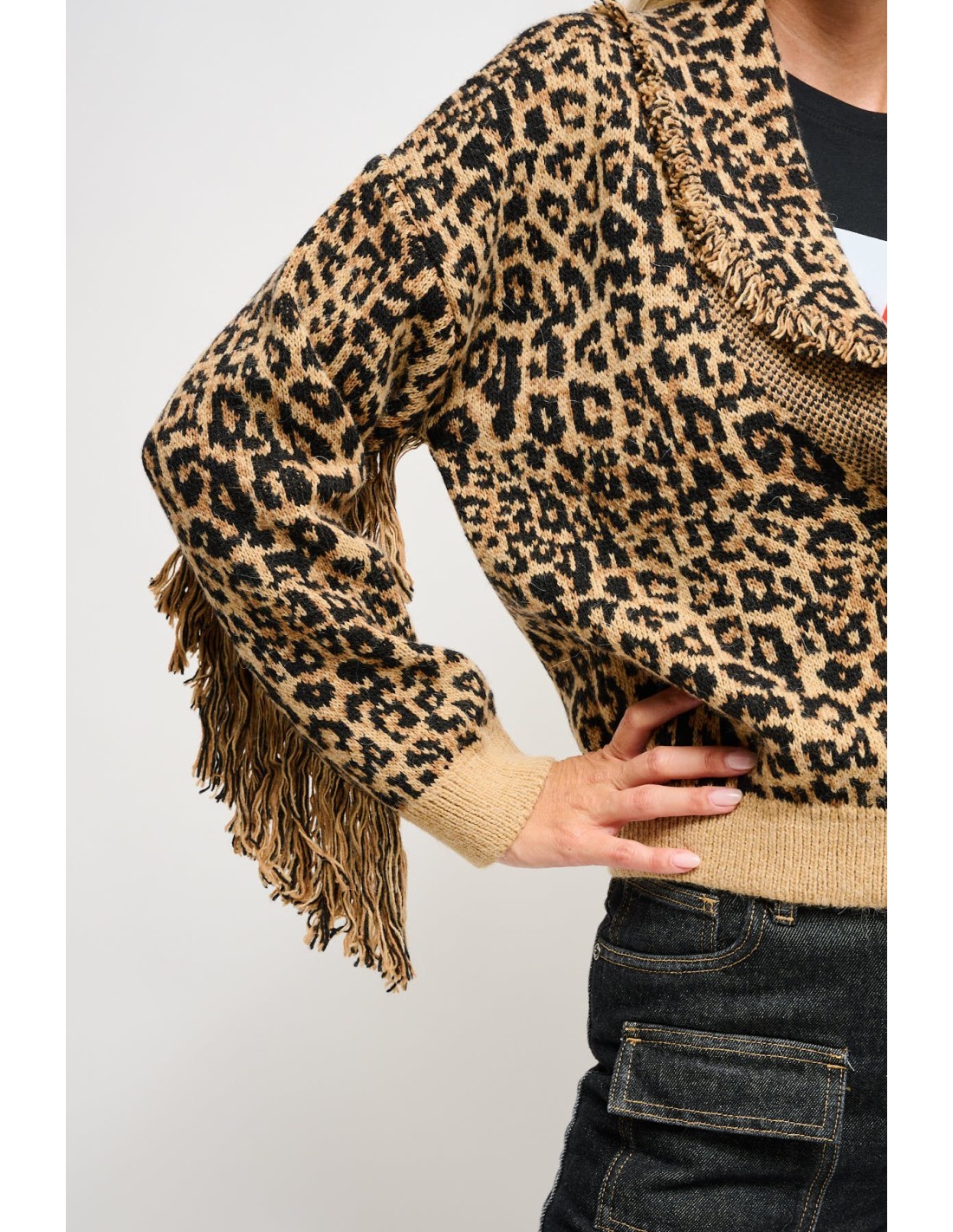 Cardigan Com Estampado De Leopardo E Franjas Maryley