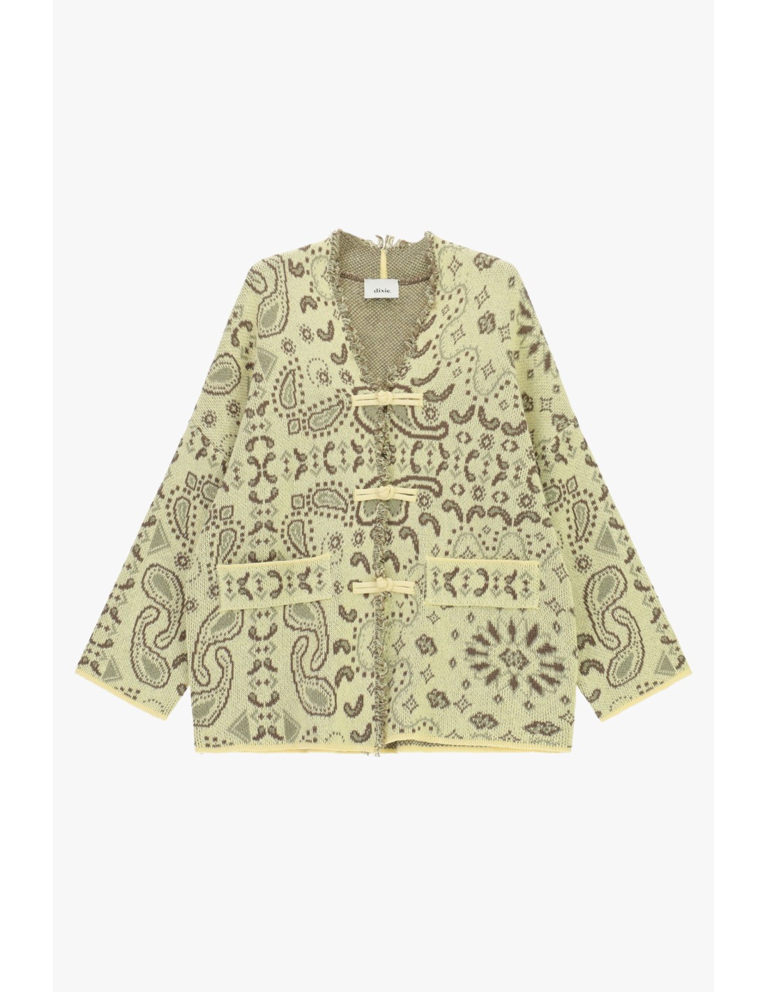 Um cardigan que se destaca graças ao padrão paisley e aos detalhes com franjas no decote. O fecho com alamares confere um toque sofisticado, enquanto os amplos bolsos frontais são perfeitos para manter à mão o que precisa. Perfeito para acrescentar personalidade aos teus looks do dia a dia.