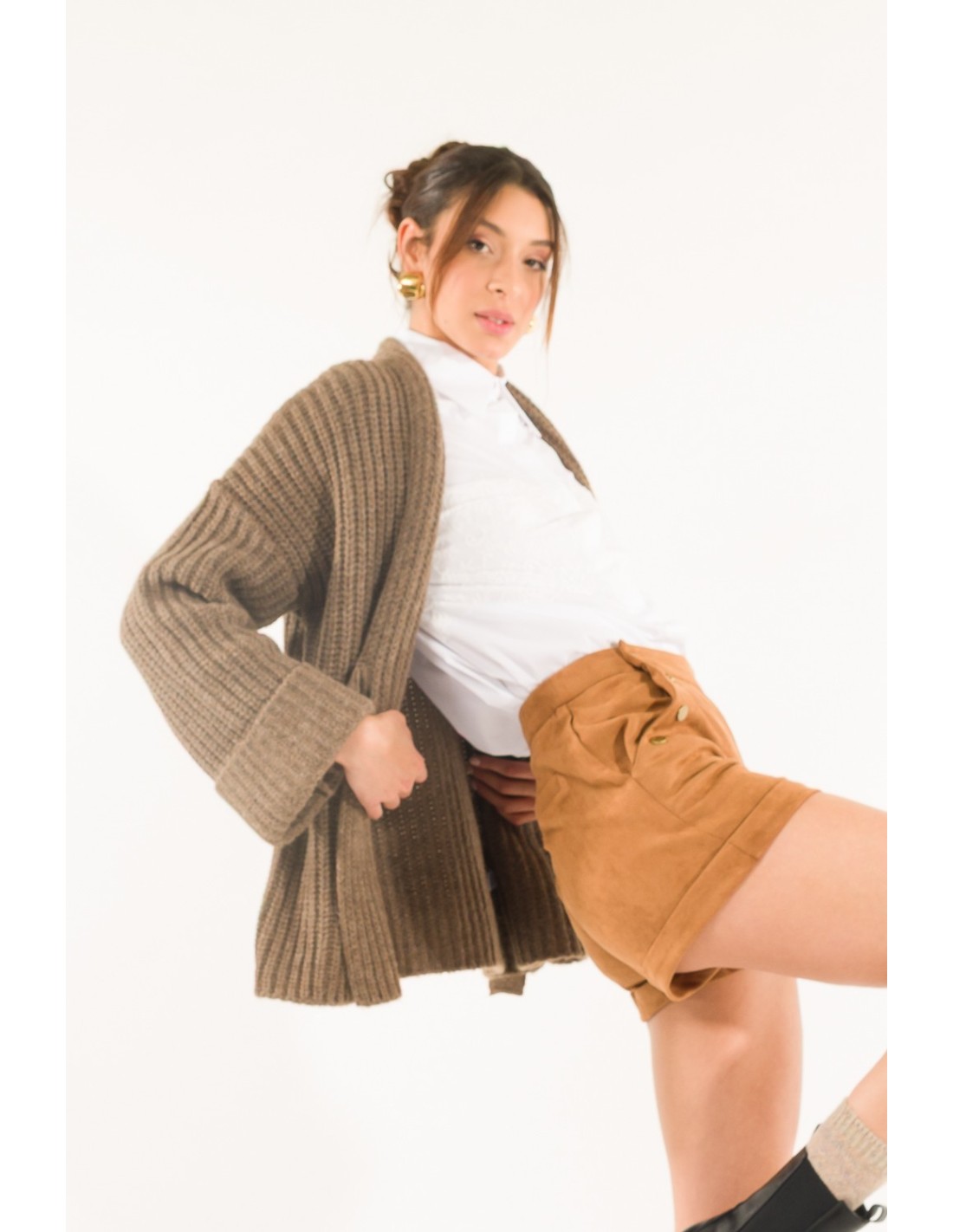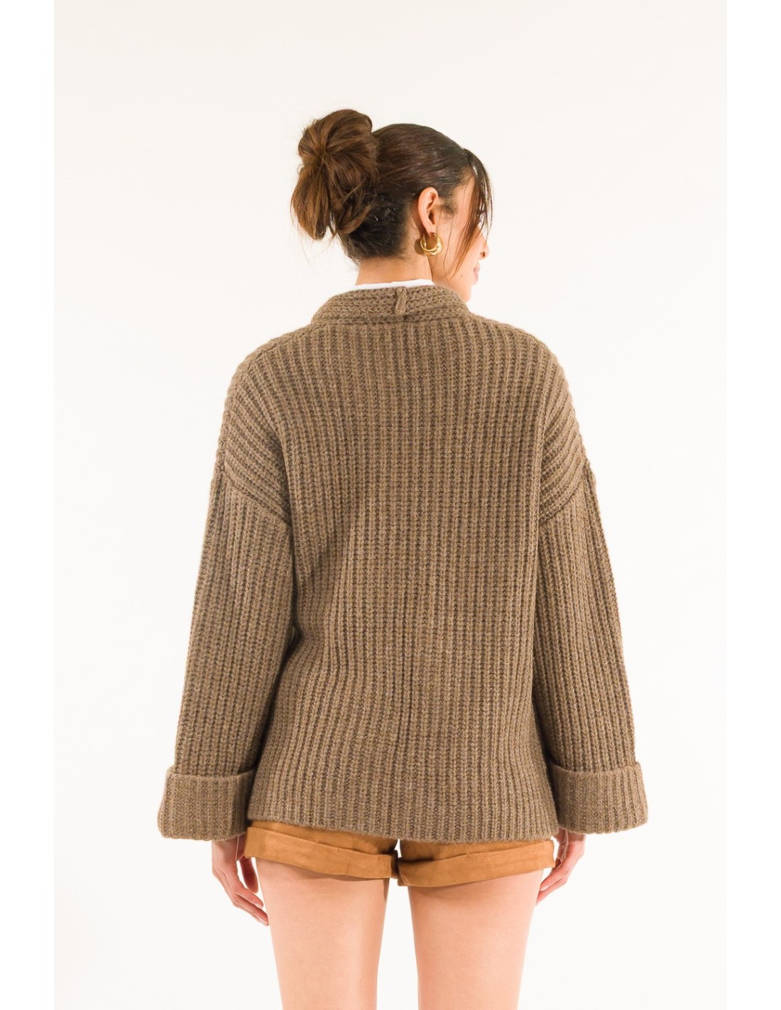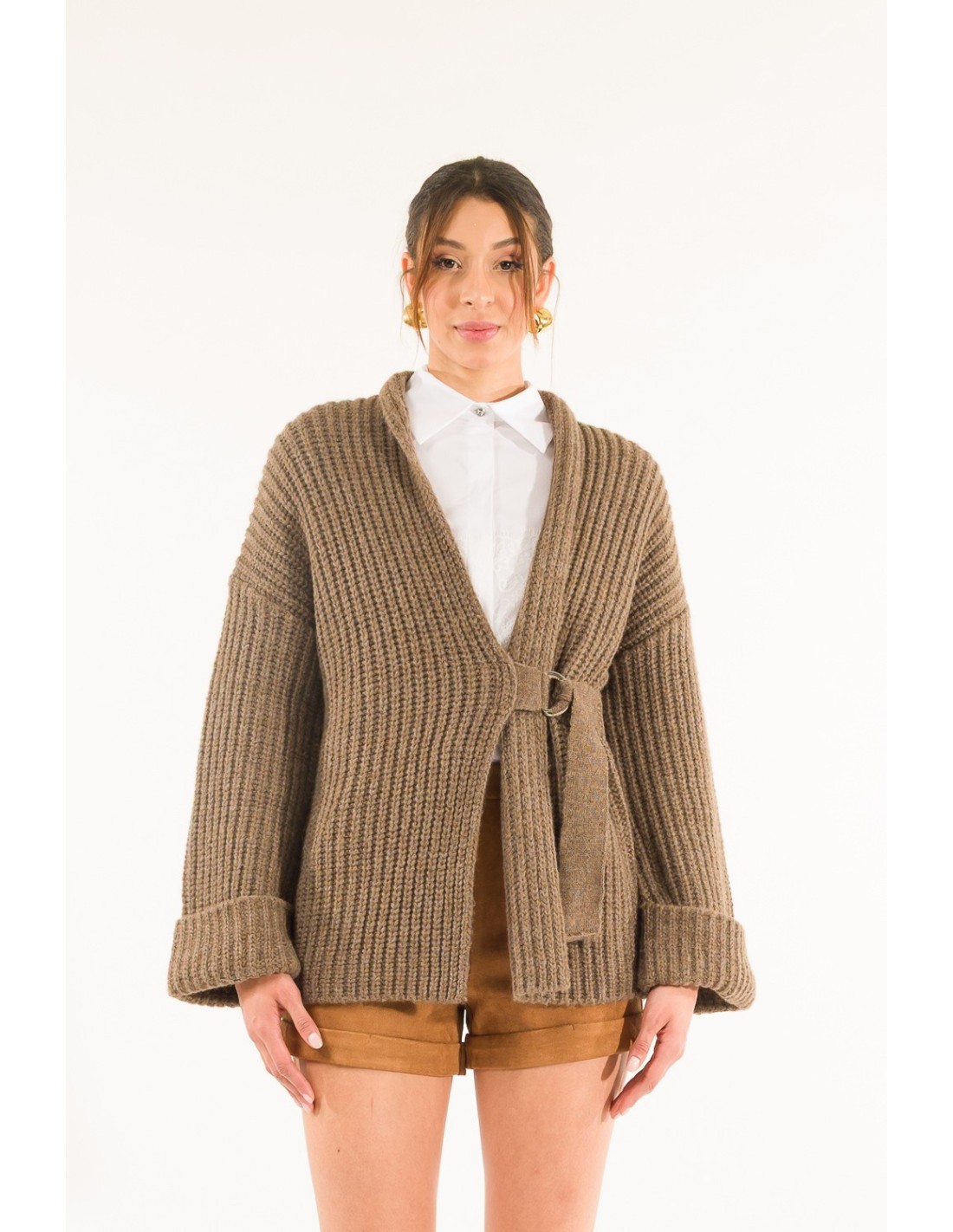 Kontatto interpreta o knitwear com um cardigan de corte relaxado e envolvente. Malha encorpada com trama tridimensional para calor e conforto, mangas amplas com dobra e fecho com tira e argola. Perfeito sobre camisas ou denim para o escritório informal e do dia para a noite na cidade.