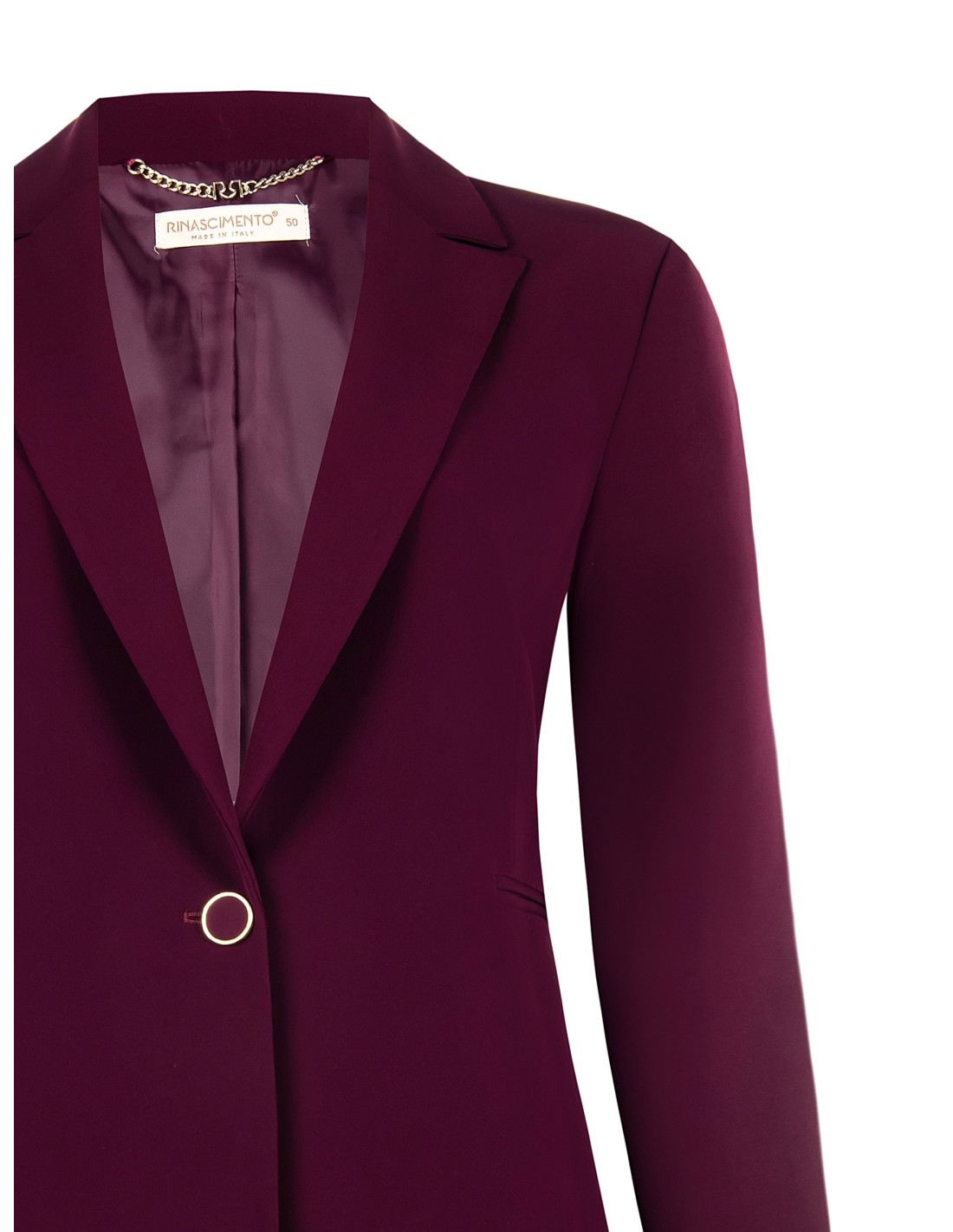 Assinado Rinascimento Curvy, um casaco ajustado que esculpe a silhueta com conforto. Confeccionado em tecido técnico elástico, veste-se sem marcar. Lapelas clássicas e um único fecho de botão metálico realçam a cintura; bolsos de debrum arrumados. Perfeito para o escritório, reuniões e cocktails, mesmo sobre calças de ganga.