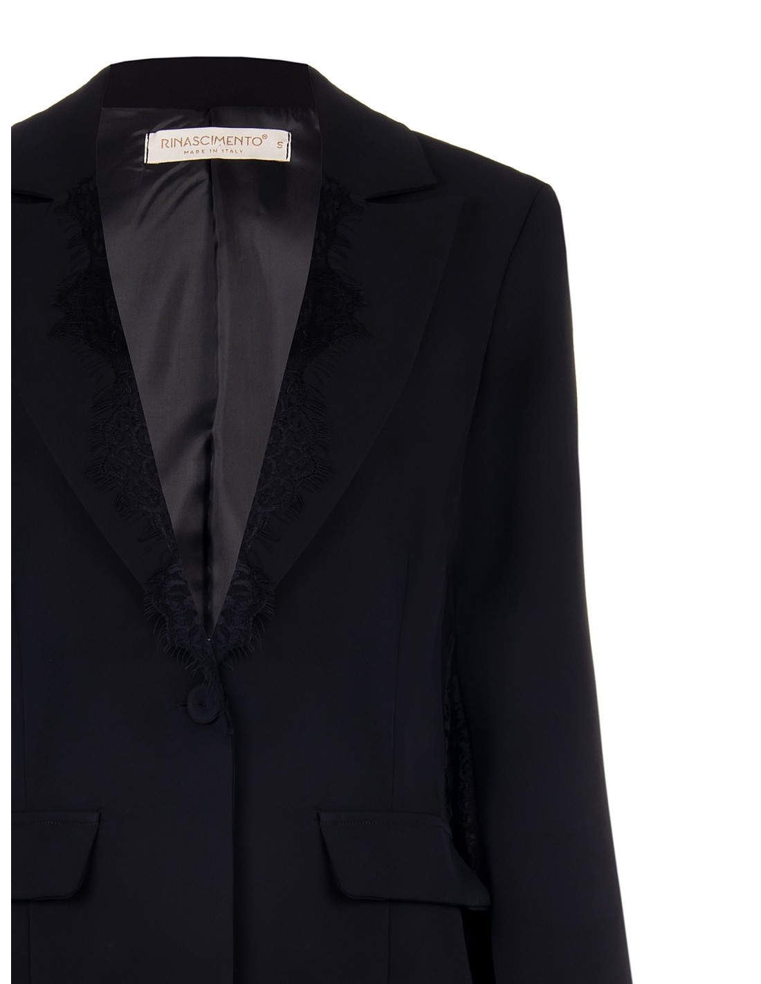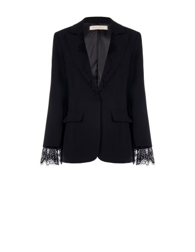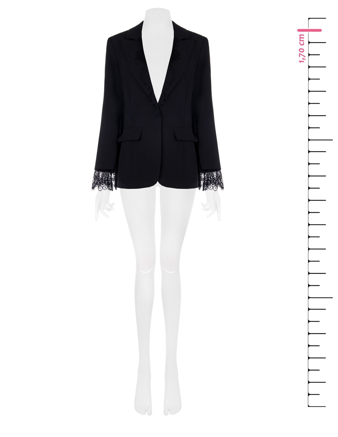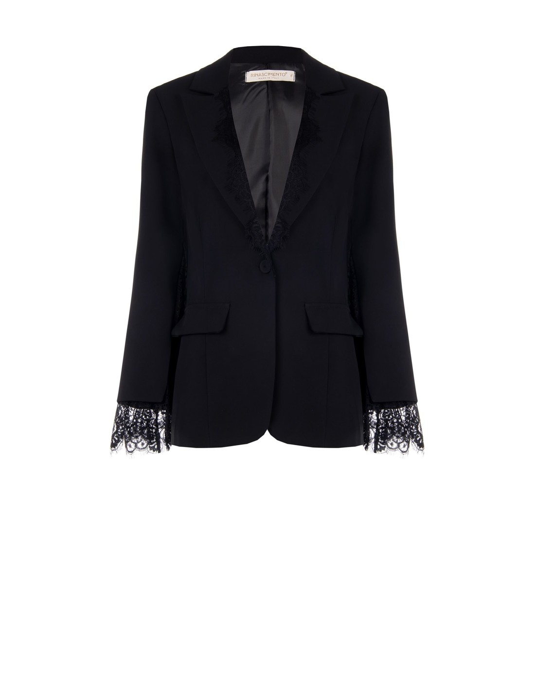 Casaco Blazer Em Tecido Técnico Com Mangas Abertas E Pormenores Em Renda Rinascimento