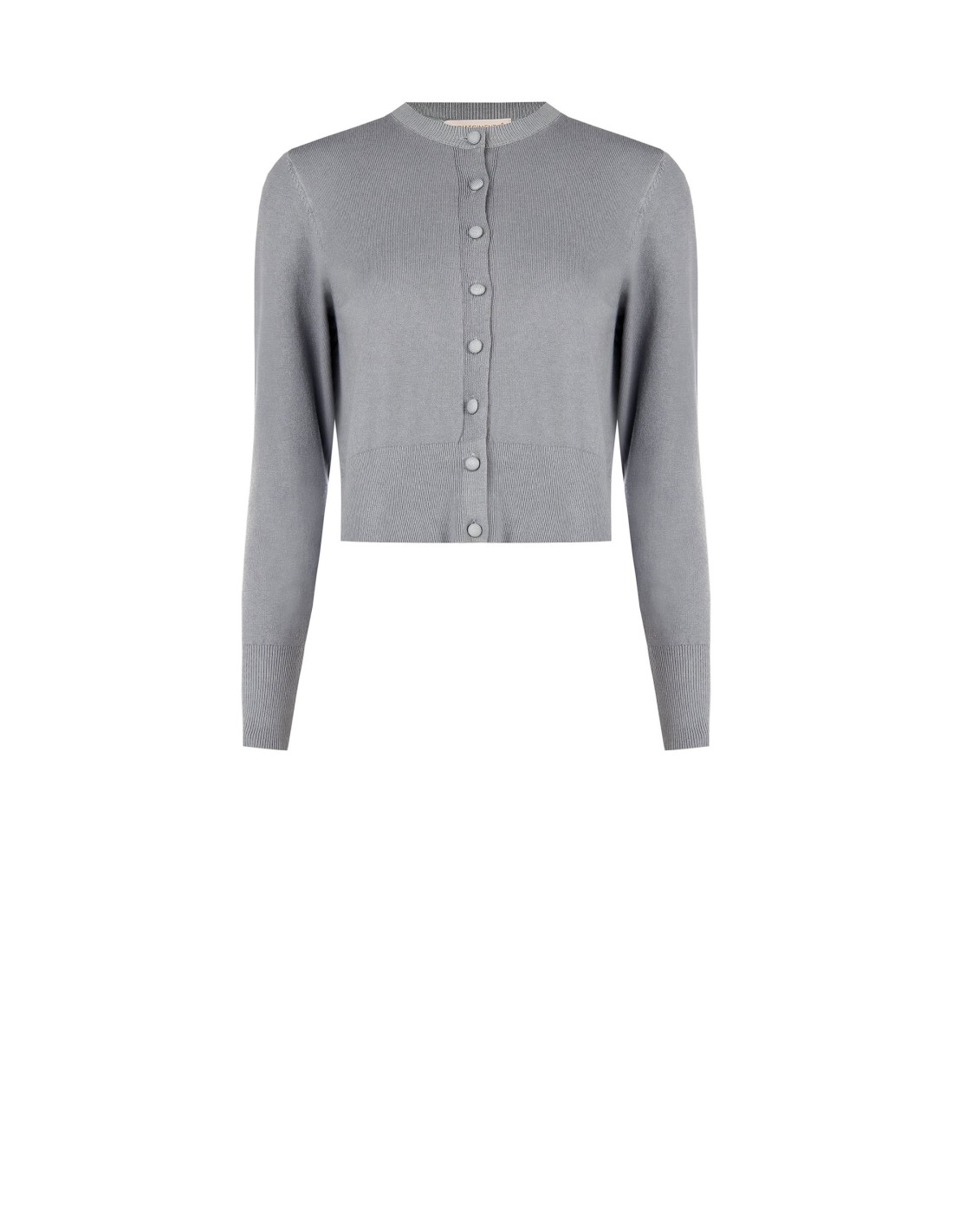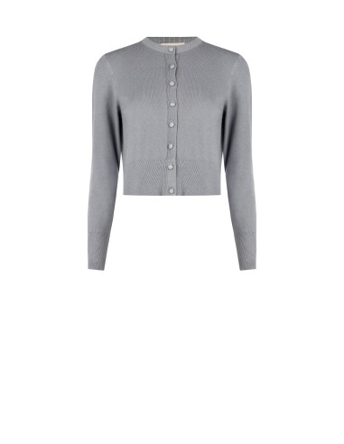 Camisola curta e fina que realça a cintura sem ser apertada. Tricot fino e macio, agradável à pele, com rebordos canelados para um ajuste perfeito. Botões cobertos e gola redonda essencial, logótipo discreto nas costas. Perfeito para o escritório ou para completar os looks do dia a dia com elegância.