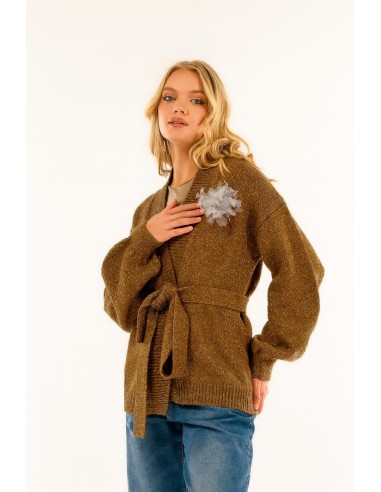 Kontatto interpreta as malhas com um tricô envolvente com um ajuste suave, definido na cintura por um cinto amovível para uma silhueta feminina. Fio macio com filigrana brilhante e textura bouclé. Pormenor de flores aplicado e mangas volumosas com punhos. Perfeito do escritório para o aperitivo, mesmo como roupa exterior leve.