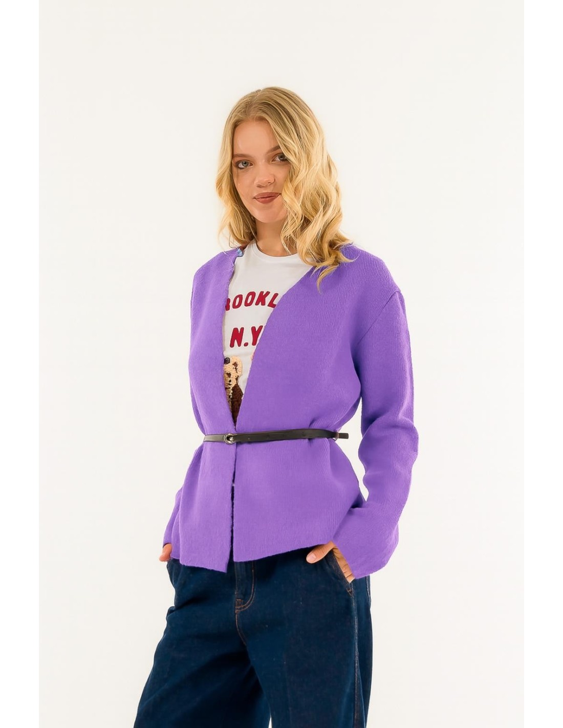 Casaco de malha com cinto Kontatto