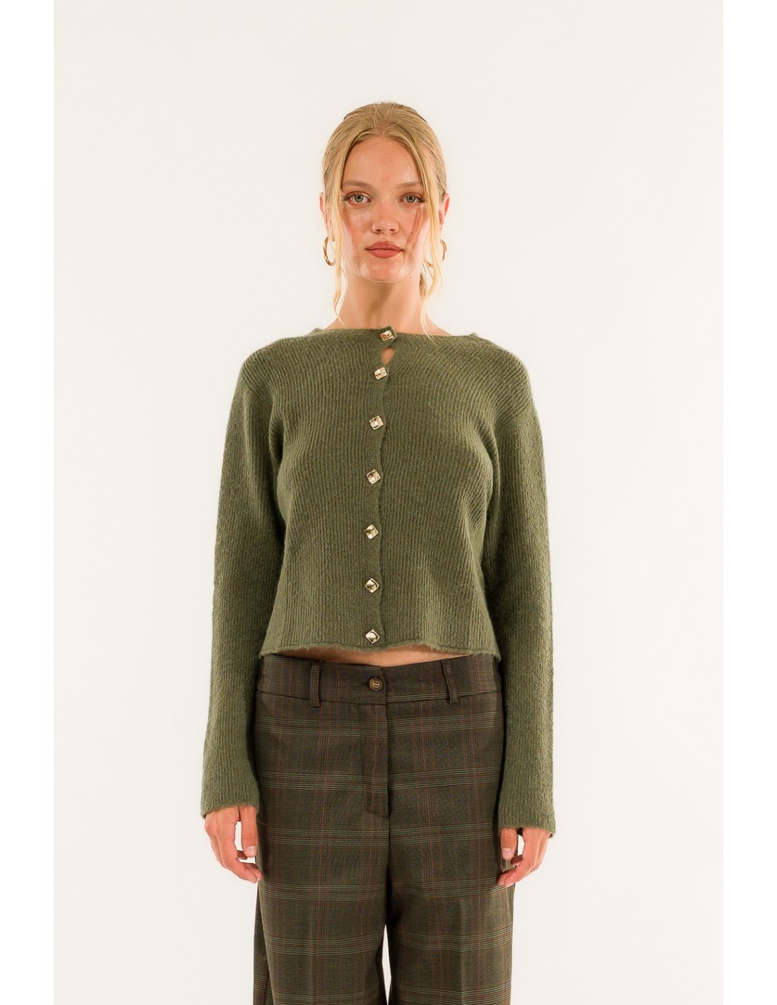 Deixe-se envolver pelo charme refinado desta camisola: um corte moderno e essencial, embelezado com botões de jóias que dão um toque refinado a cada roupa. Perfeita para dar classe e personalidade ao seu look do dia a dia.