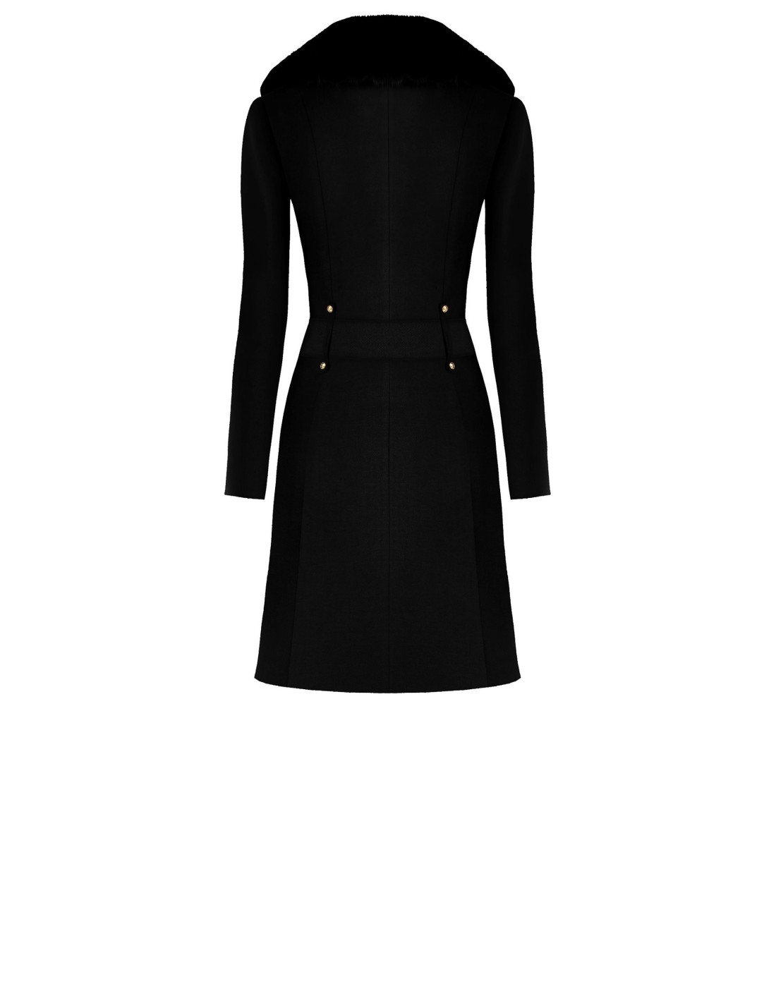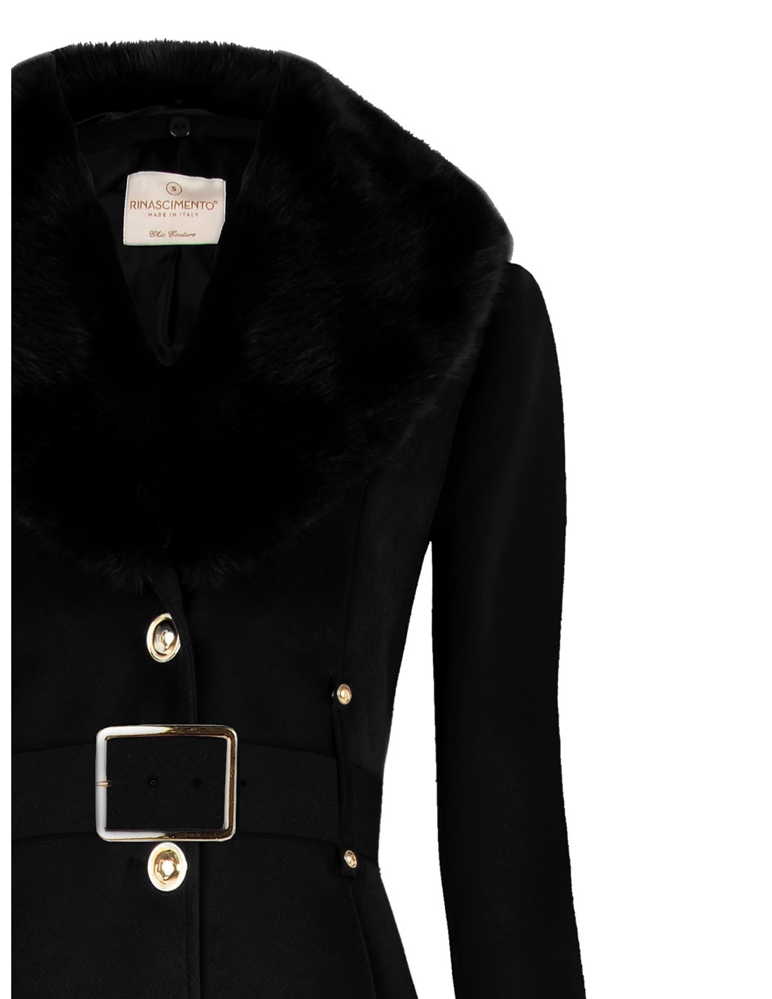 Casaco com corte acinturado que valoriza a silhueta. Velour macio com efeito aveludado, quente e confortável. Gola em pele ecológica removível e cinto em pele sintética com fivela metálica para definir a cintura. Botões joia frontais. Perfeito do escritório a eventos noturnos, também sobre vestidos.