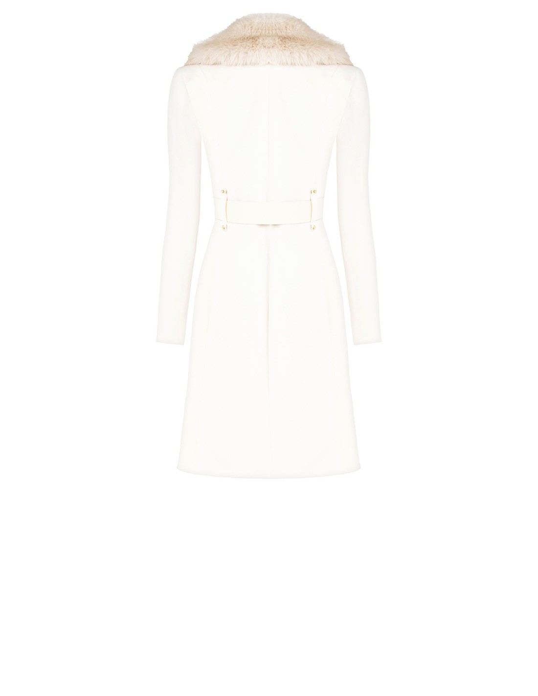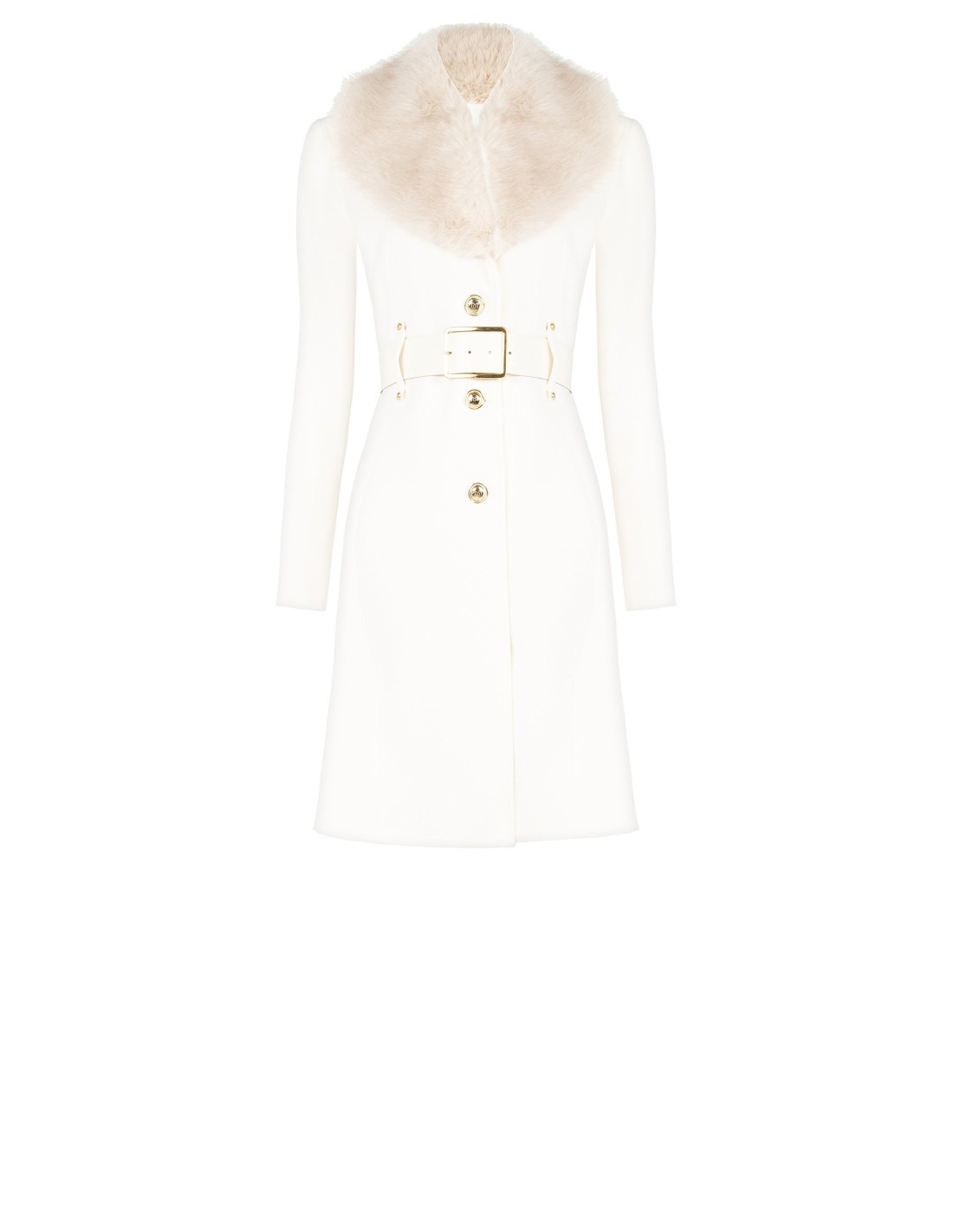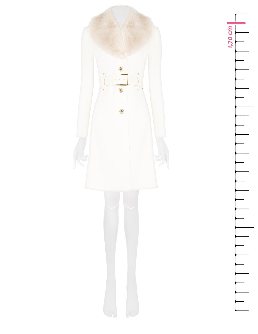 Casaco com corte acinturado que valoriza a silhueta. Velour macio com efeito aveludado, quente e confortável. Gola em pele ecológica removível e cinto em pele sintética com fivela metálica para definir a cintura. Botões joia frontais. Perfeito do escritório a eventos noturnos, também sobre vestidos.
