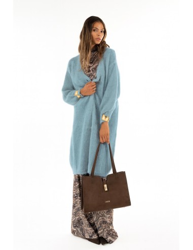 Kontatto assina uma peça de vestuário comprida e envolvente, com um corte suave que adelgaça a silhueta. Malha macia com efeito mohair, muito leve e quente. Decote em V limpo com botão metálico maxi e bolsos laterais discretos. Perfeito sobre vestidos ou calças de ganga para o escritório e momentos de lazer, acrescenta conforto e feminilidade a todos os looks.