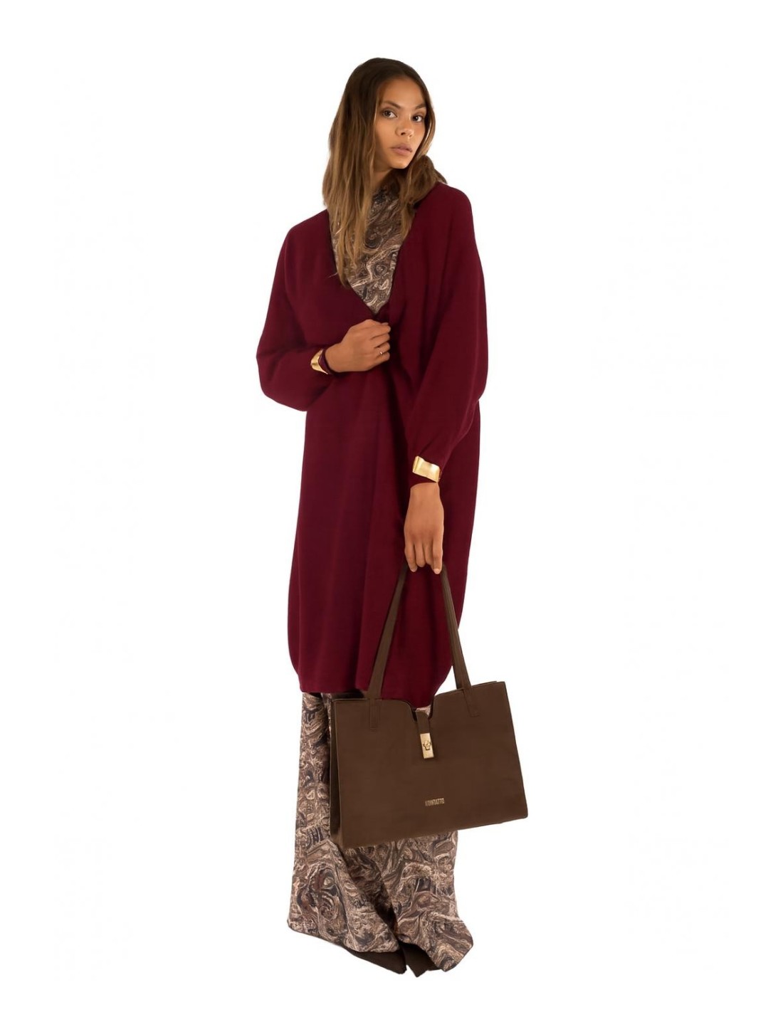 Kontatto assina uma peça de vestuário comprida e envolvente, com um corte suave que adelgaça a silhueta. Malha macia com efeito mohair, muito leve e quente. Decote em V limpo com botão metálico maxi e bolsos laterais discretos. Perfeito sobre vestidos ou calças de ganga para o escritório e momentos de lazer, acrescenta conforto e feminilidade a todos os looks.