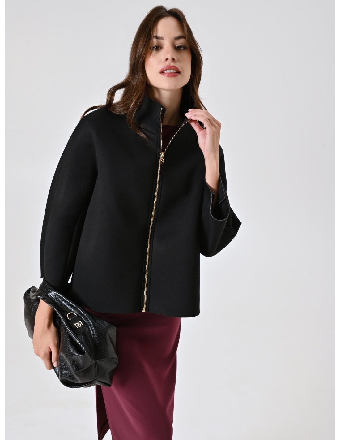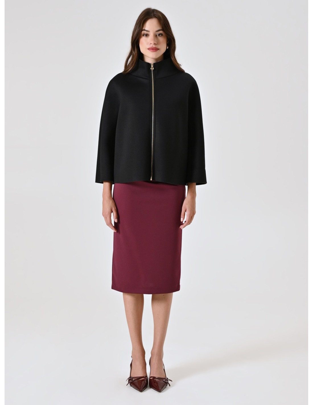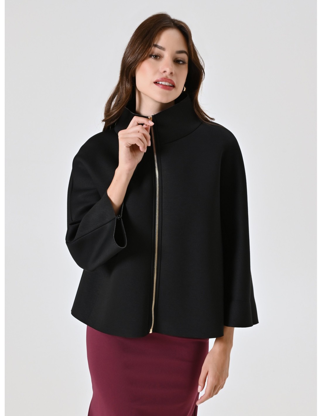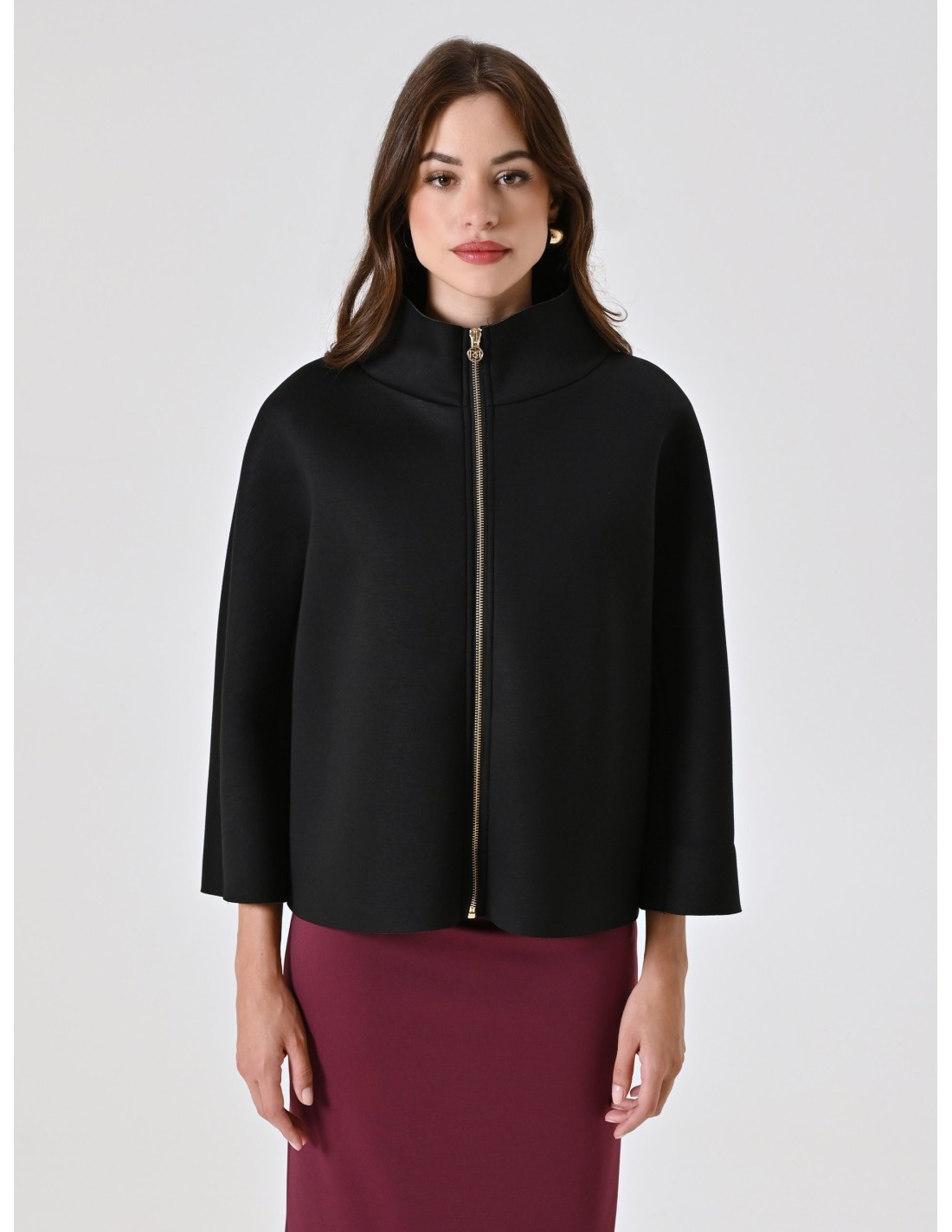 Casaco Curto Com Efeito De Capa De Neoprene Rinascimento